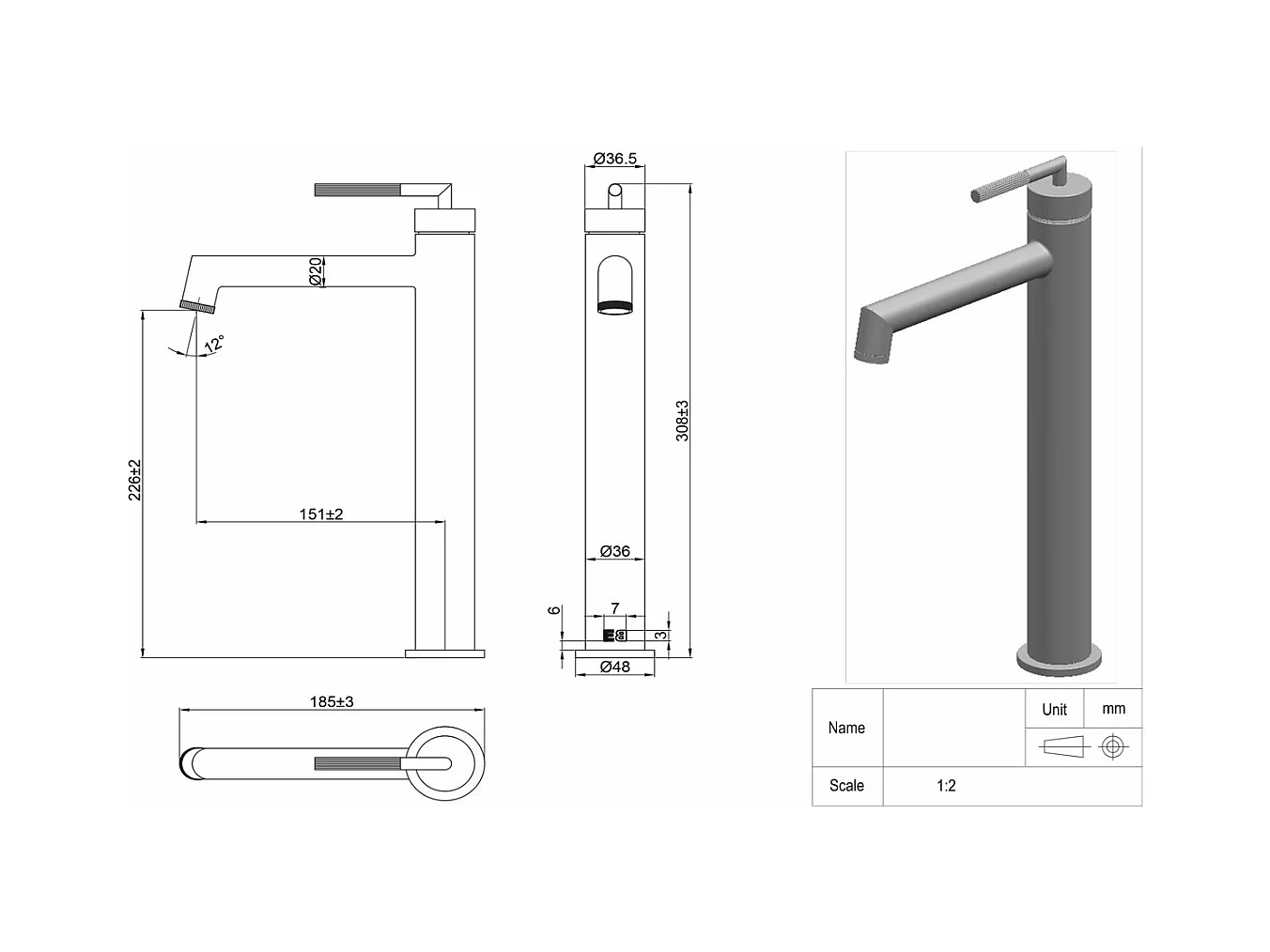 Portofino Miscelatore per lavabo alto in acciaio inox Essebagno
