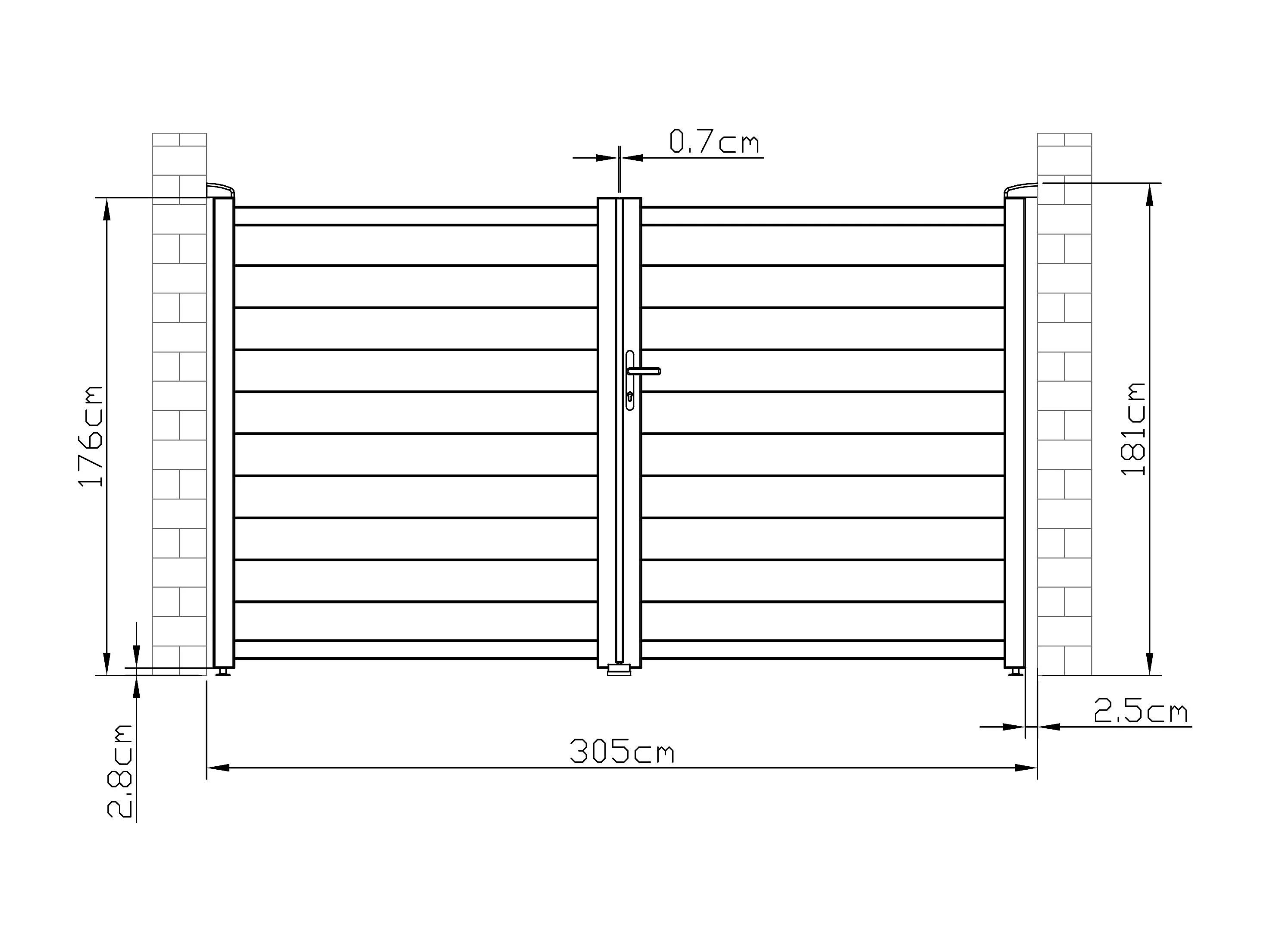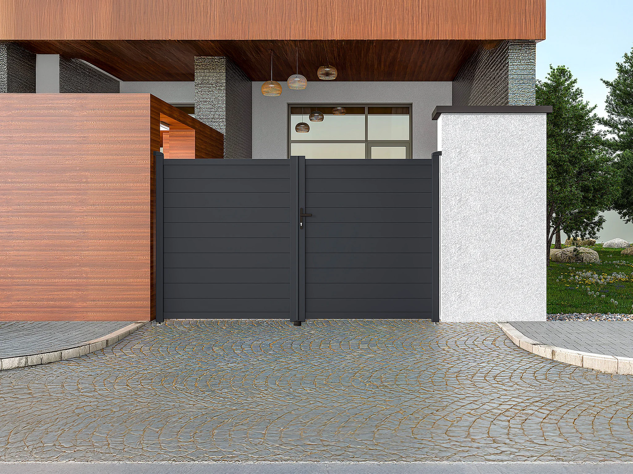 Cancello a battente L305 x H181 cm Alluminio pieno Antracite - NAZARIO