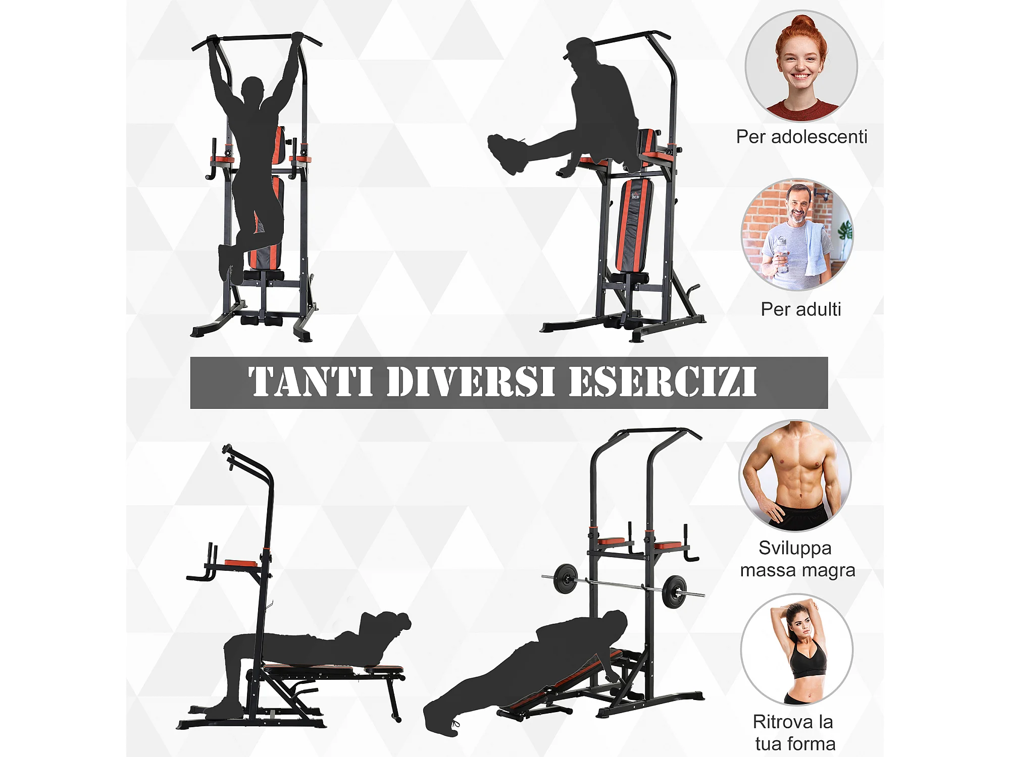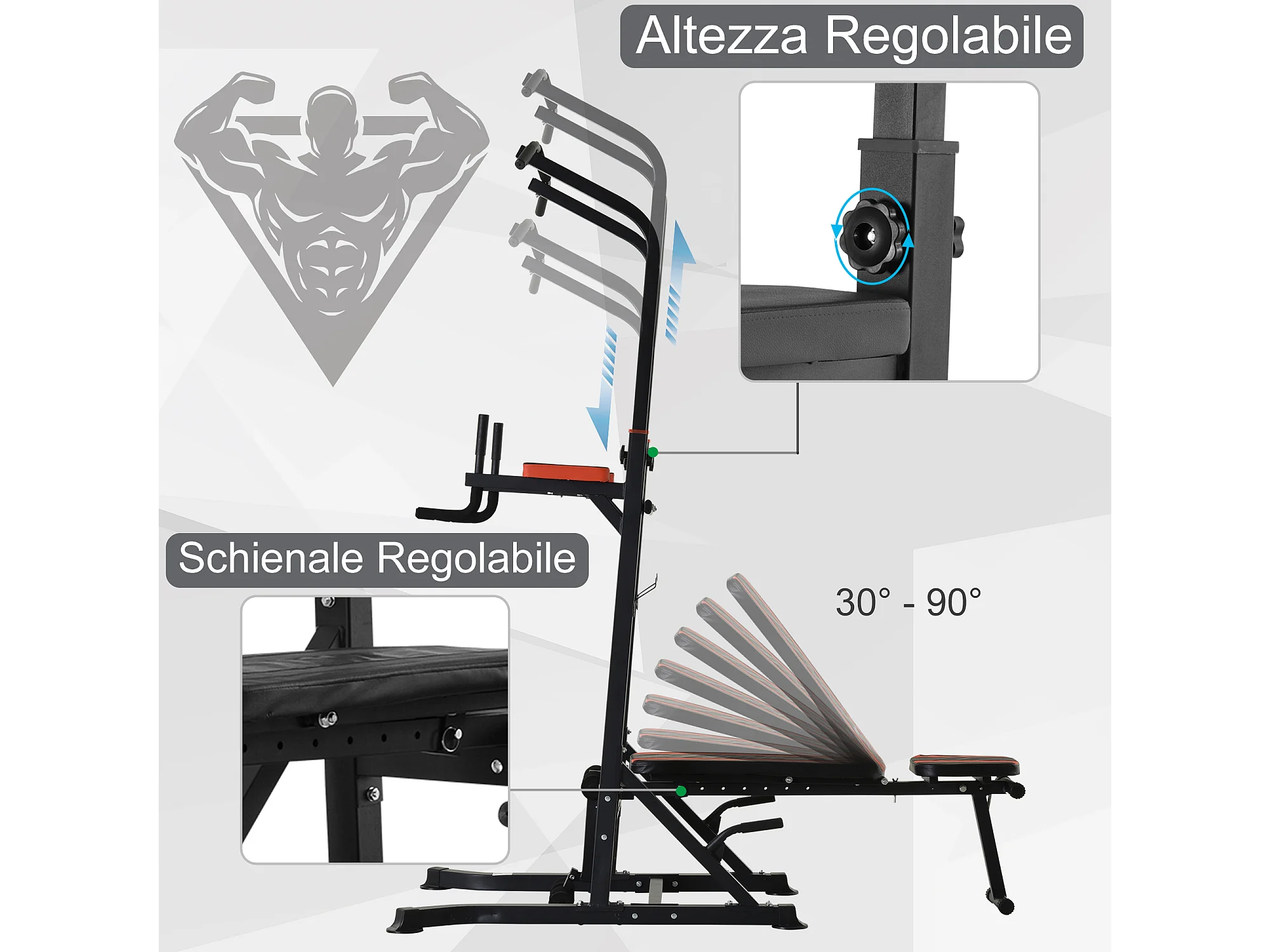 Postazione pieghevole multiuso allenamento, barra trazioni, sedia romana