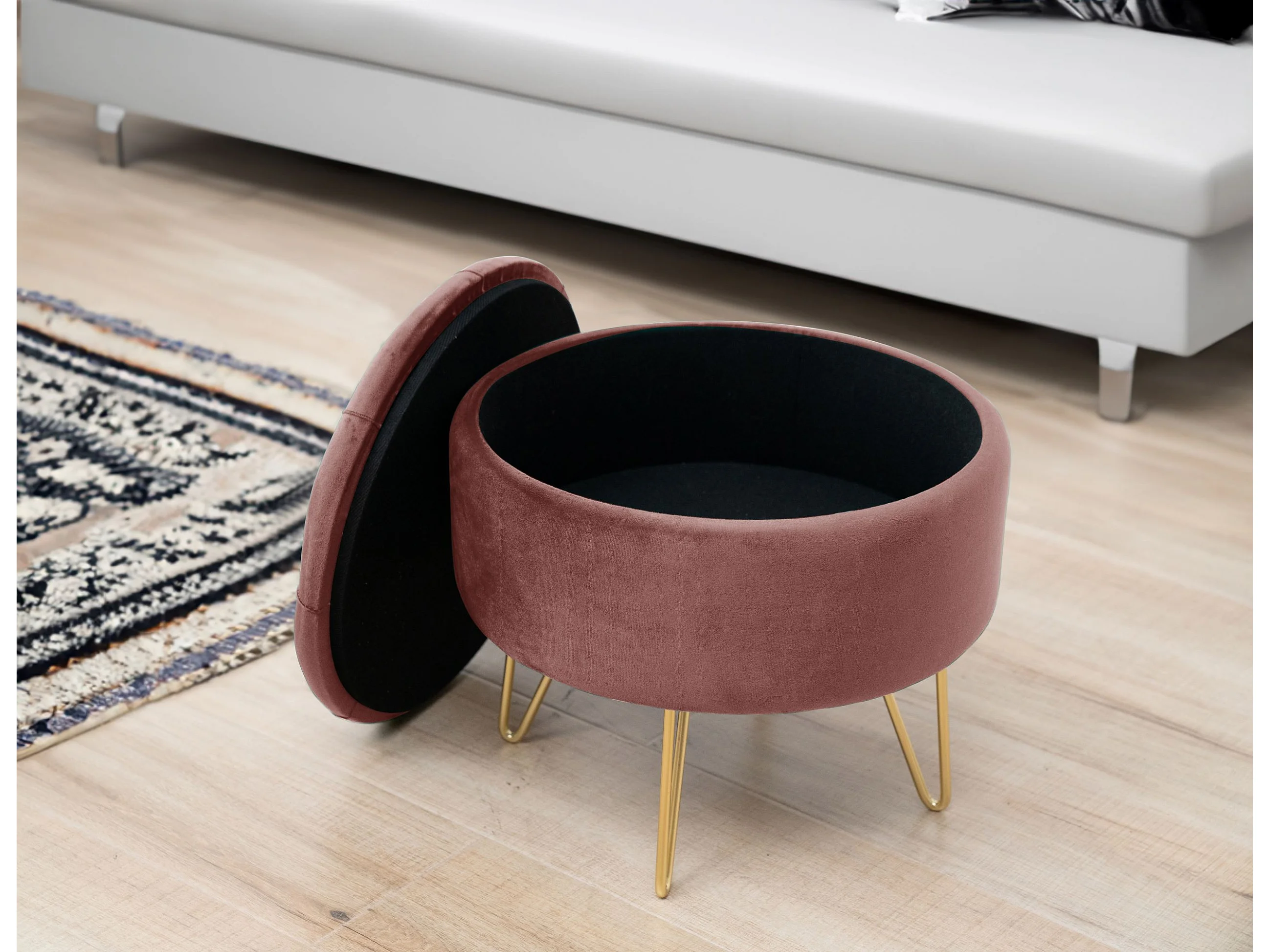 Pouf a scomparto rotonda in velluto trapuntato AKORD CARO colore Rose