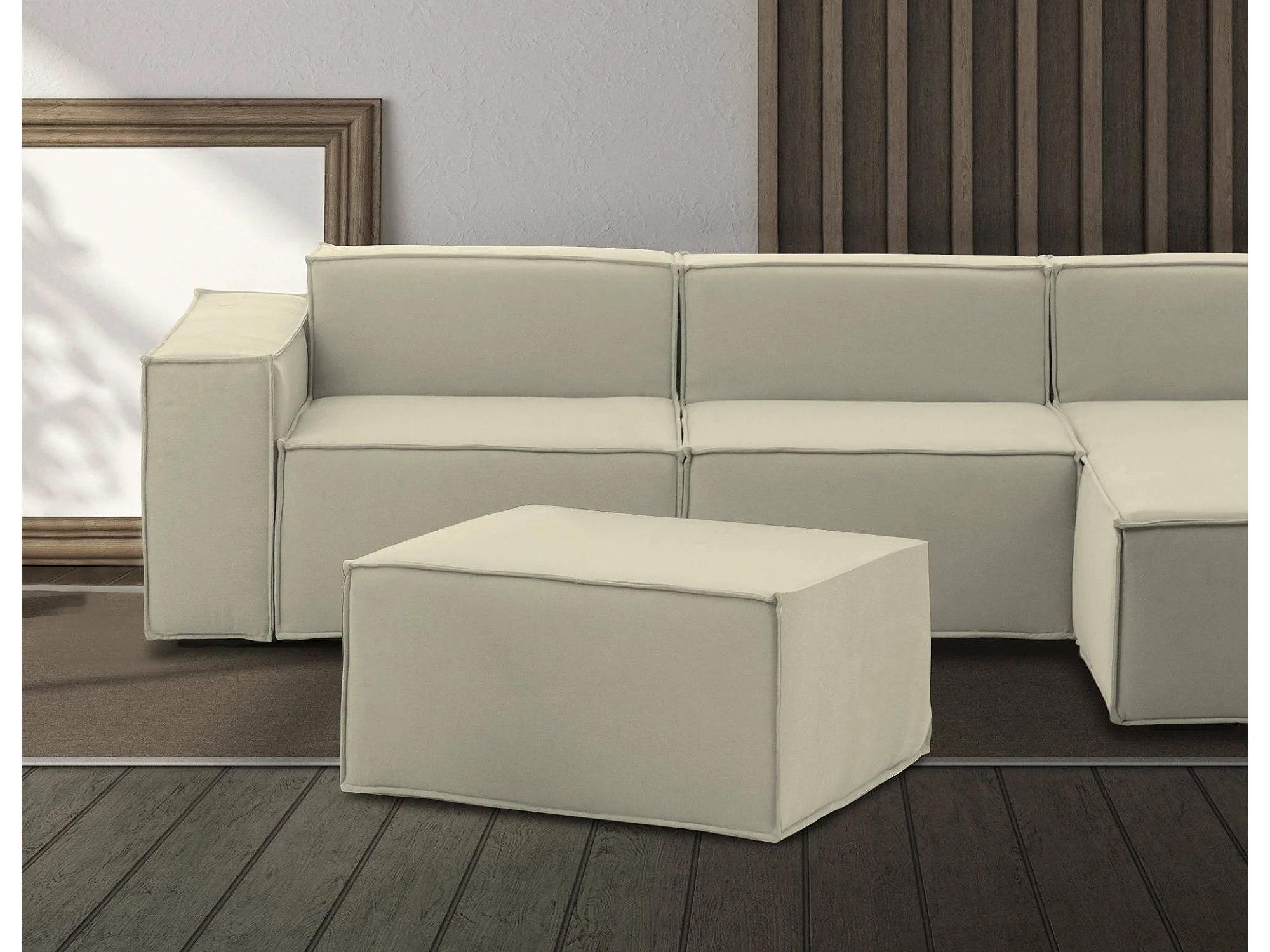 Pouf Barbara, Pouf da salotto, 100% Made in Italy, Poltroncina relax in tessuto imbottito, Cm 80x70h43, Beige