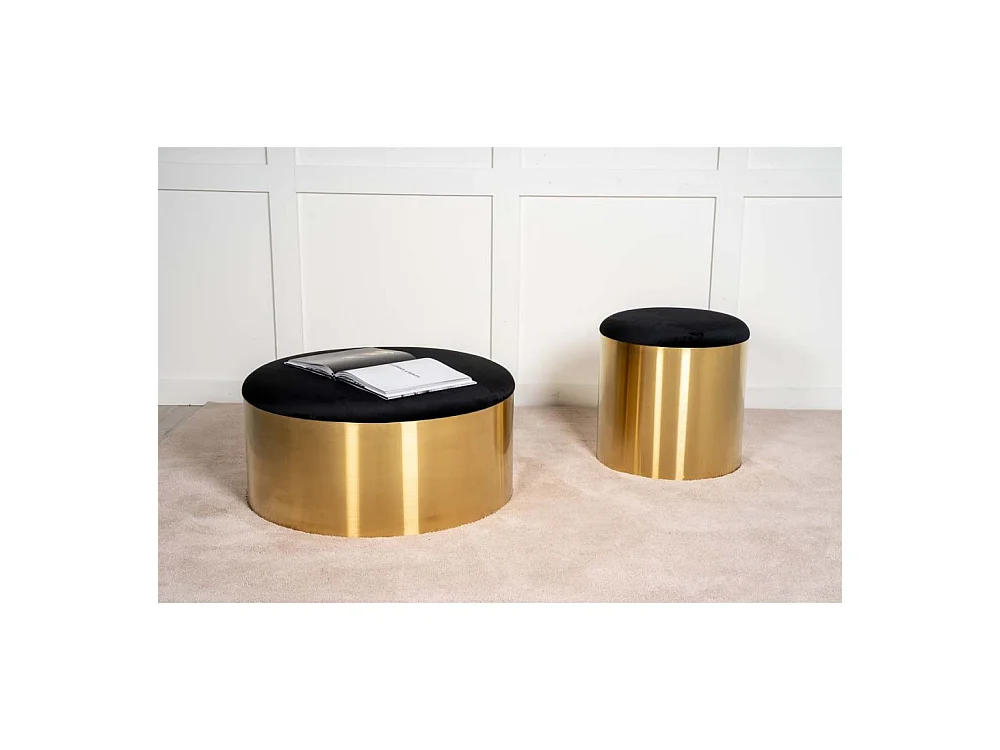 Pouf con cuscino in velluto nero e rame Puff 75 cm