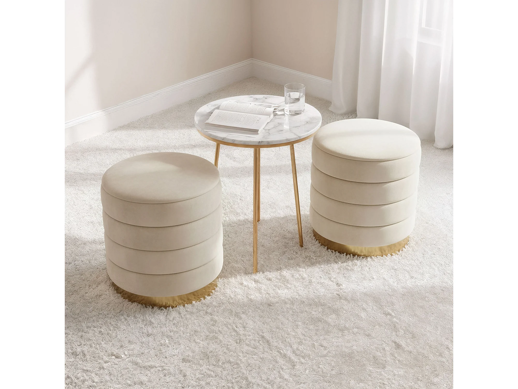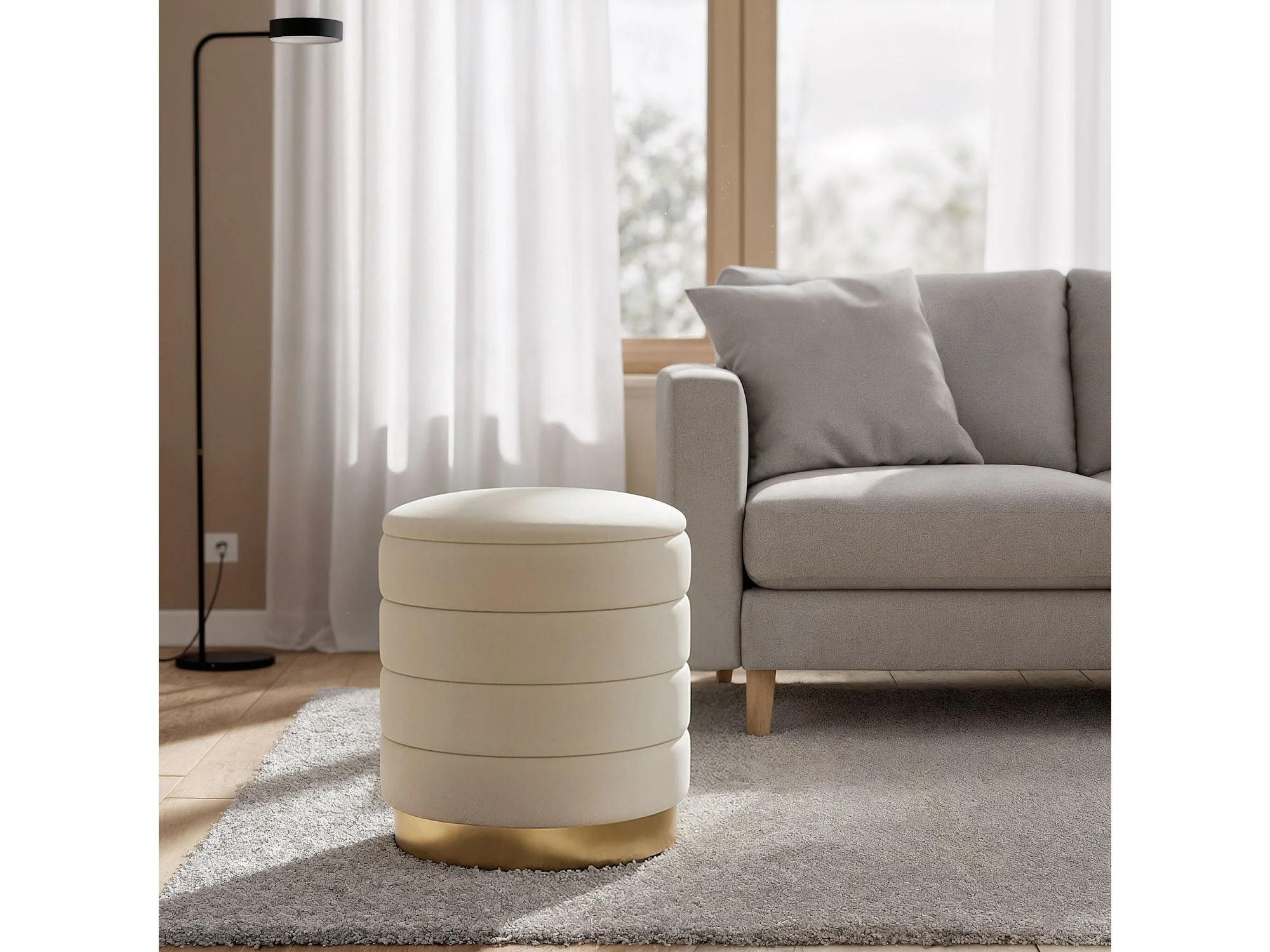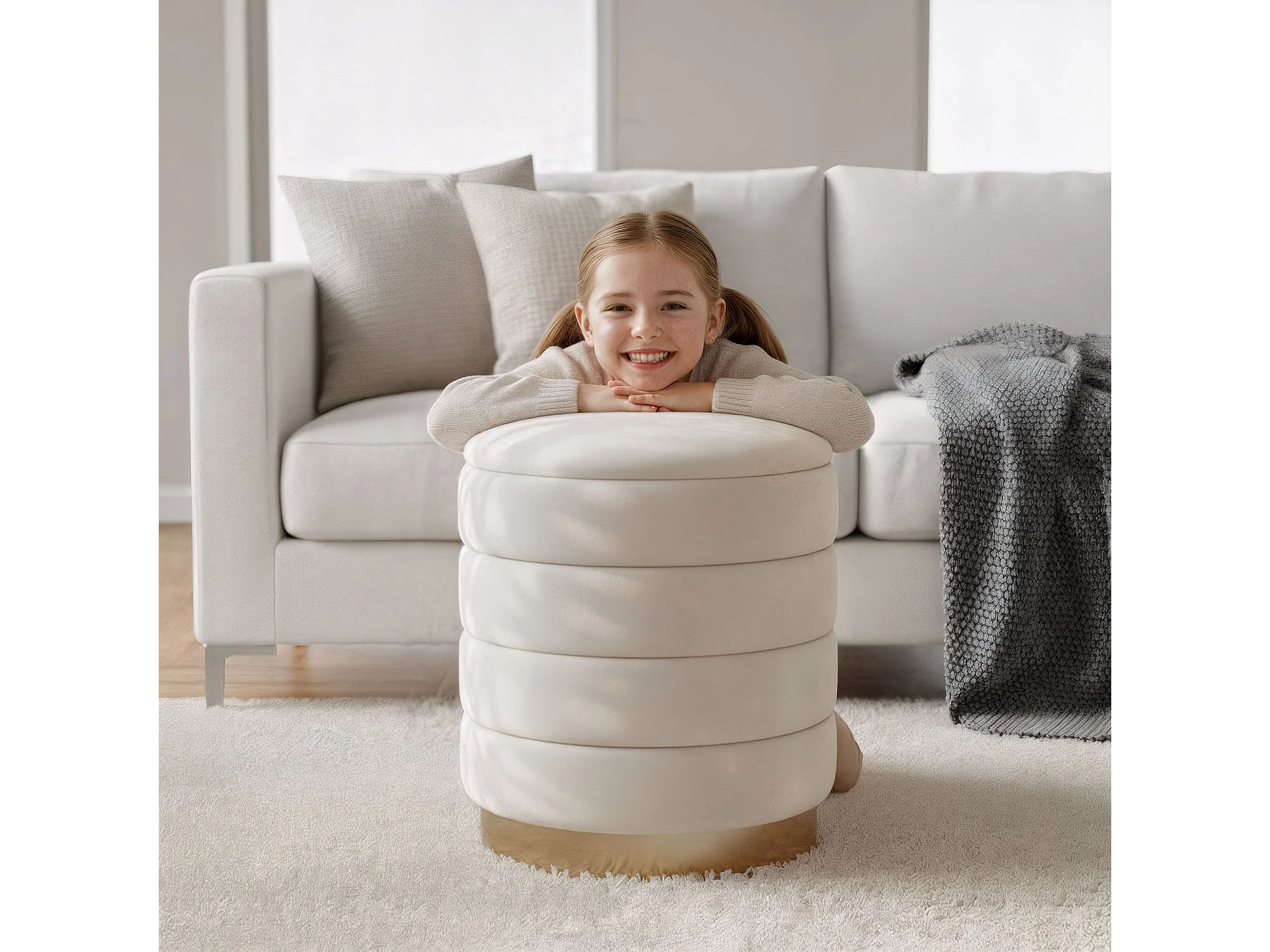 Pouf contenitore cilindrico in velluto 40 cm LUNA Crema
