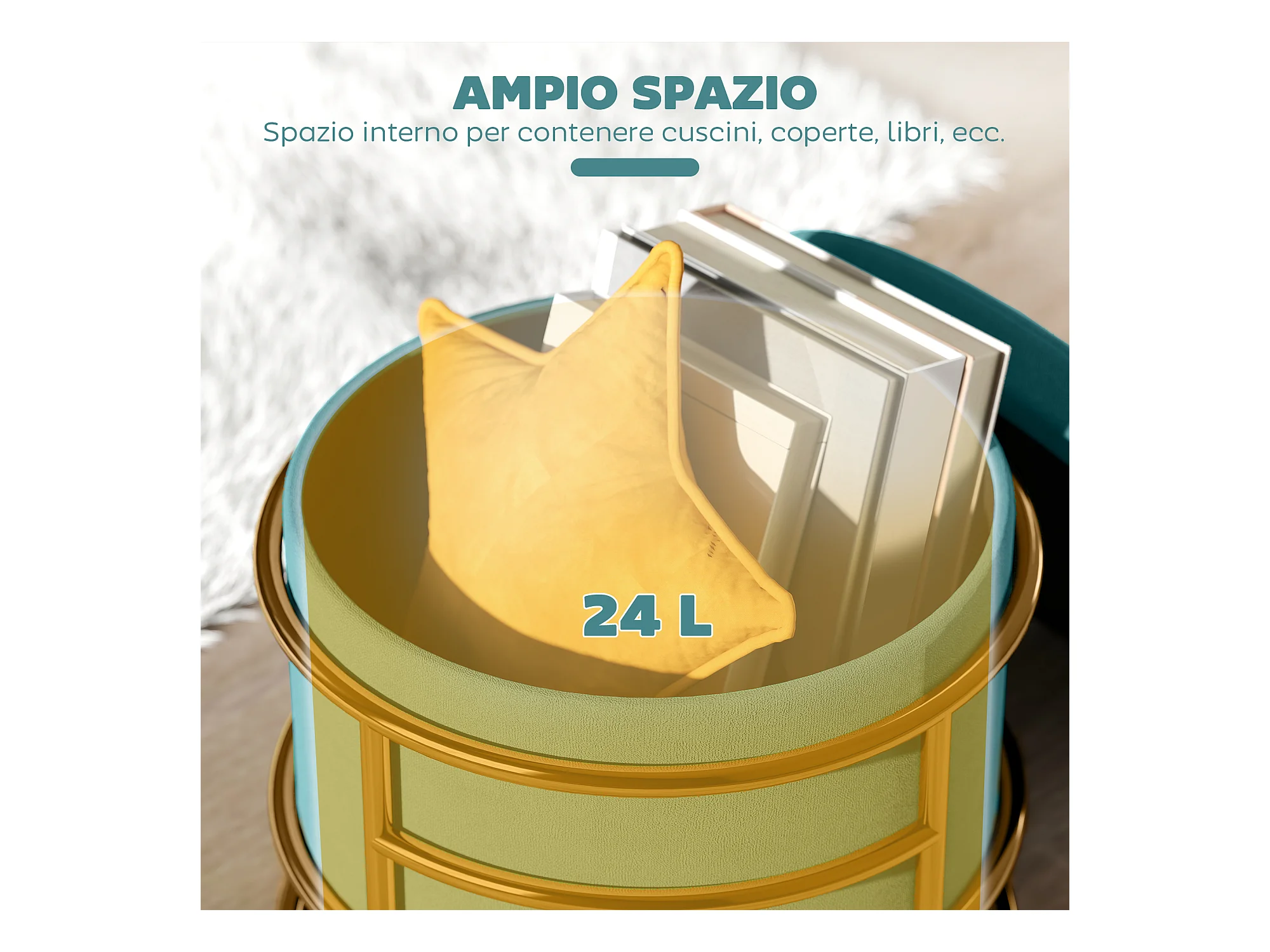 Pouf contenitore da 24 litri con coperchio rimovibile in velluto verde