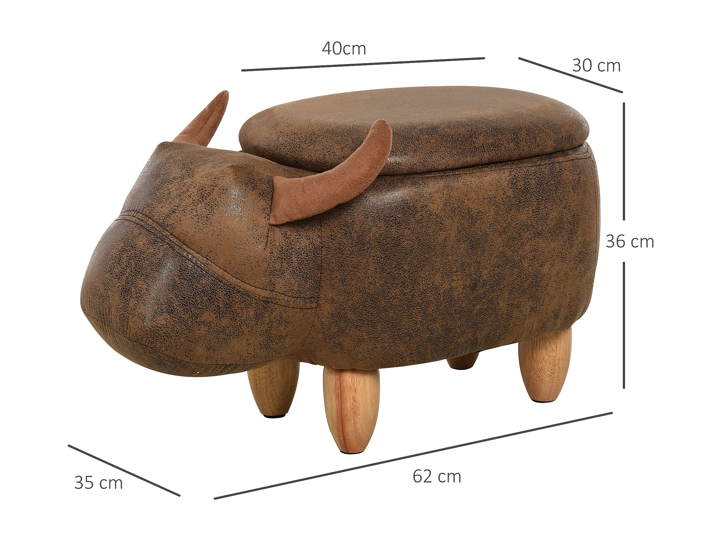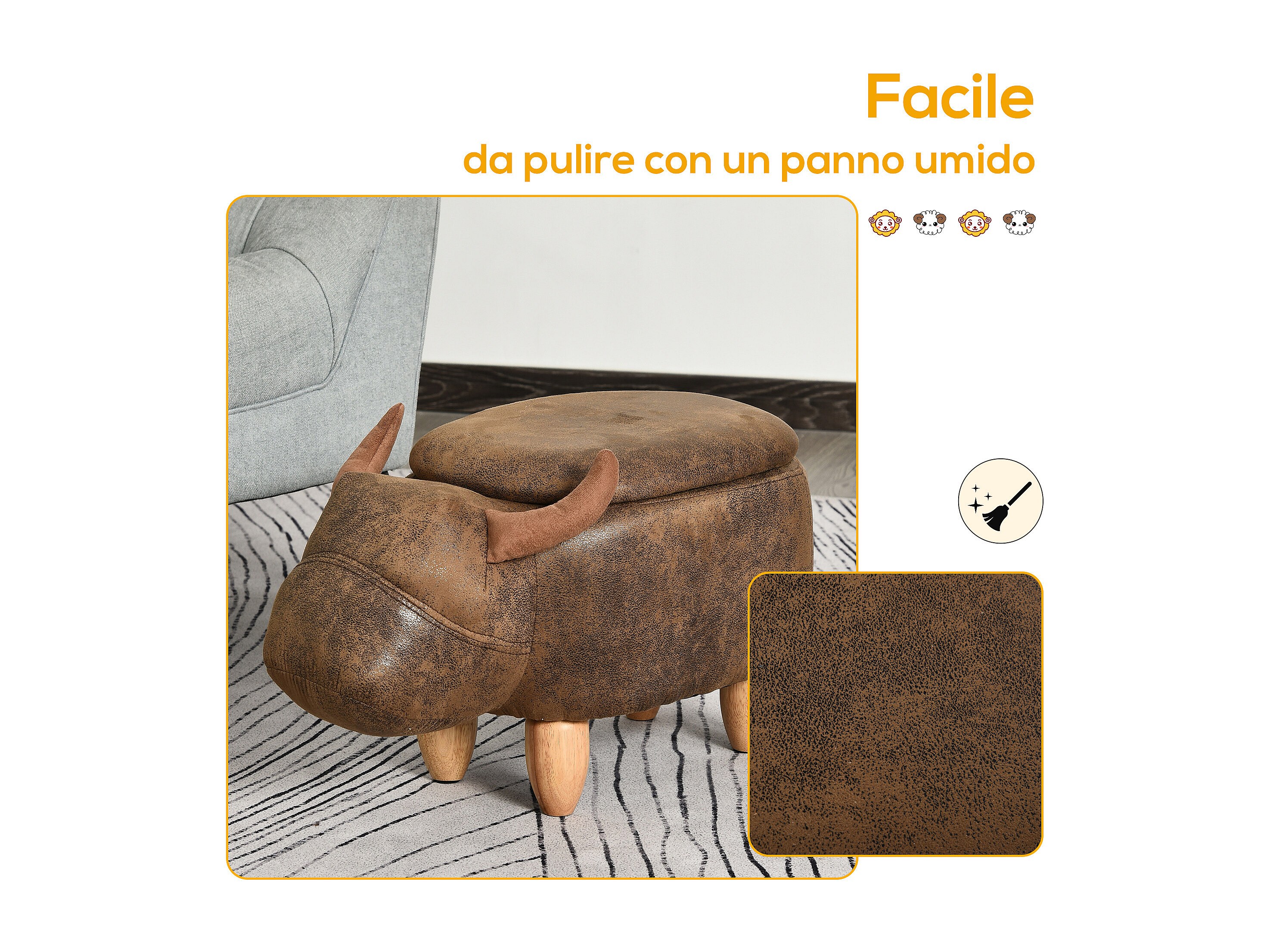 Pouf contenitore imbottito forma di bufalo 62x35x36cm marrone