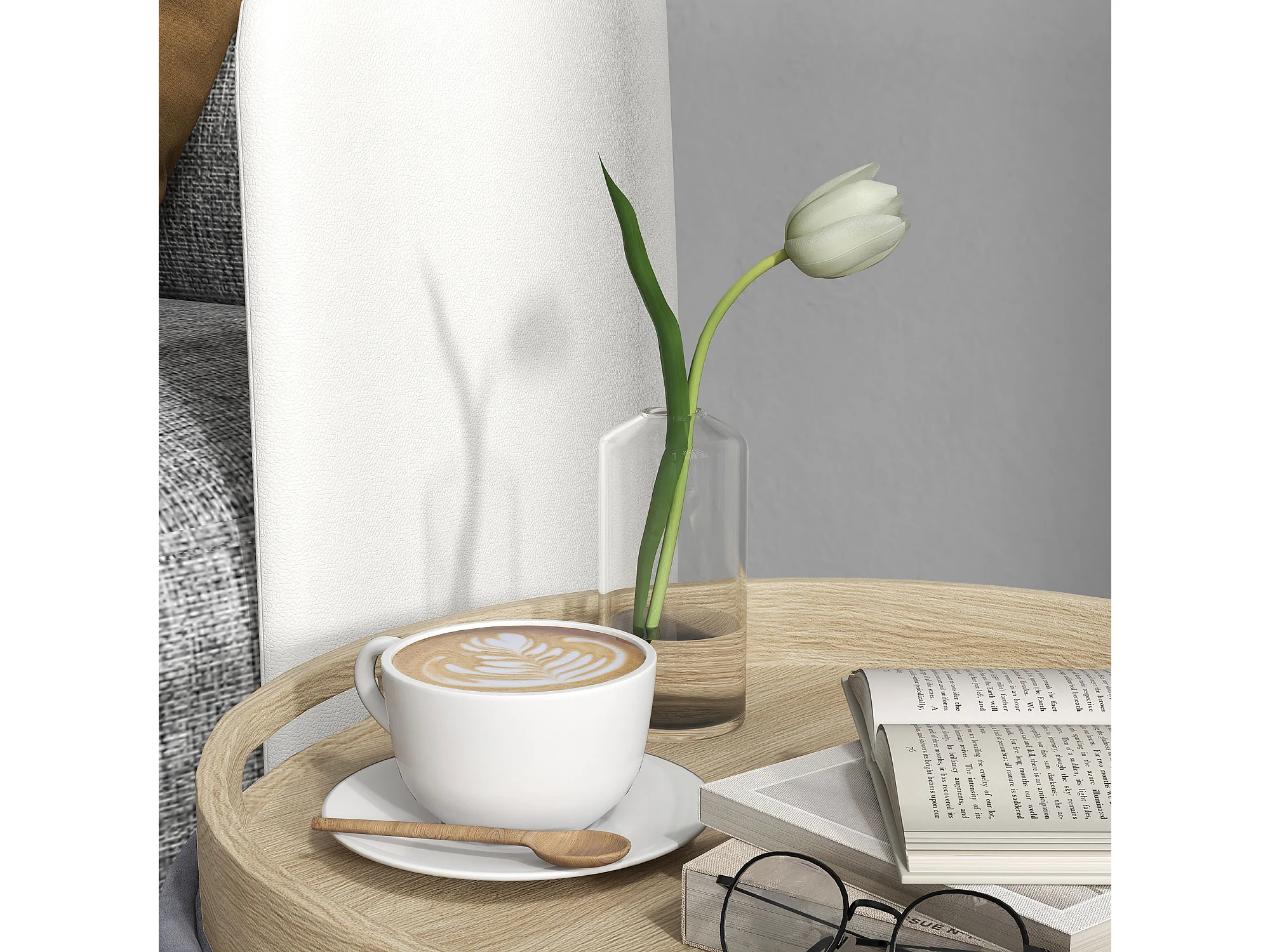 Pouf contenitore tessuto sherpa con vassoio a ribalta grigio