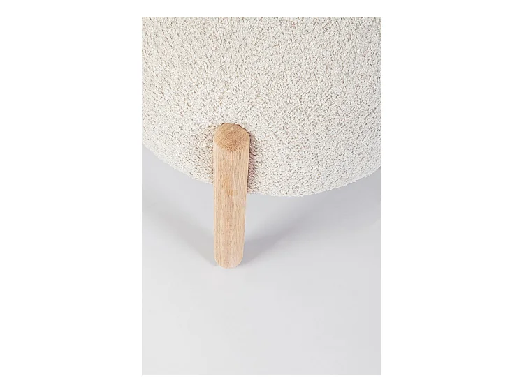 Pouf in tessuto naturale effetto bouclé e gambe in legno rubber wood - DAYLA