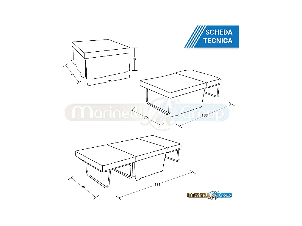 Pouf lettino pieghevole 75X75X43 cm ecopelle Beige - Beny
