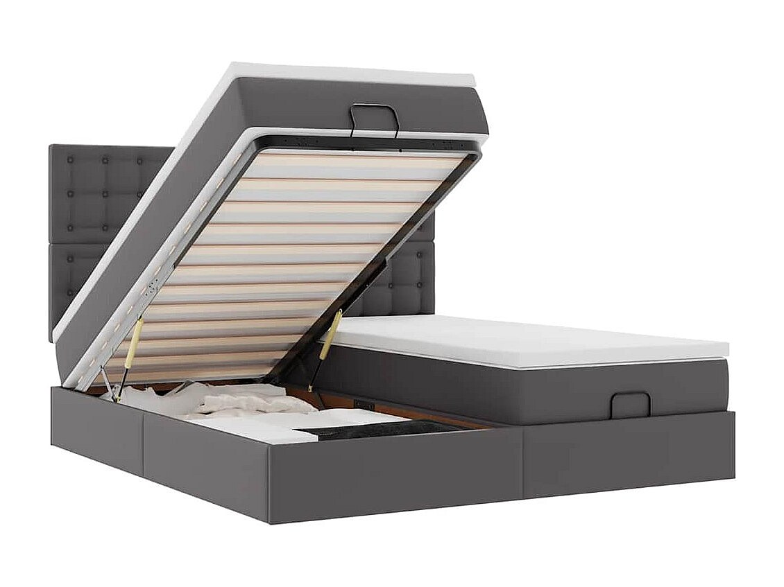 Struttura Letto Pouf con Materasso Grigio 180x200 cm Similpelle