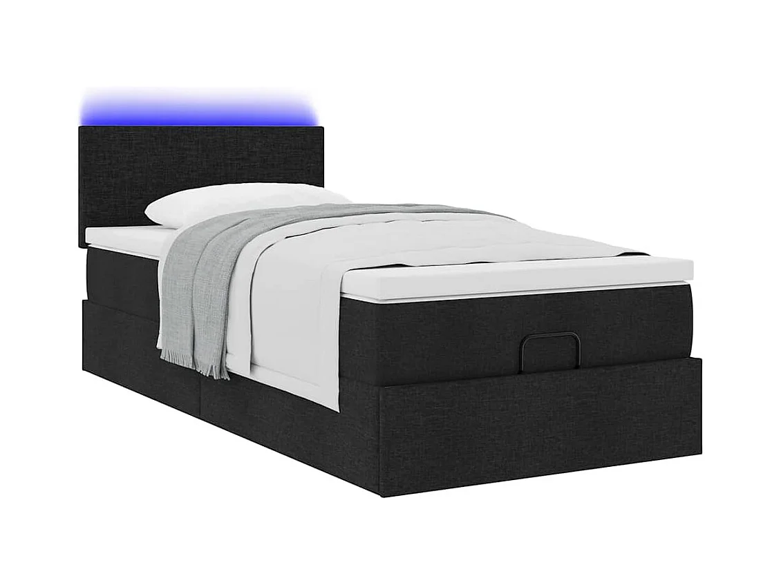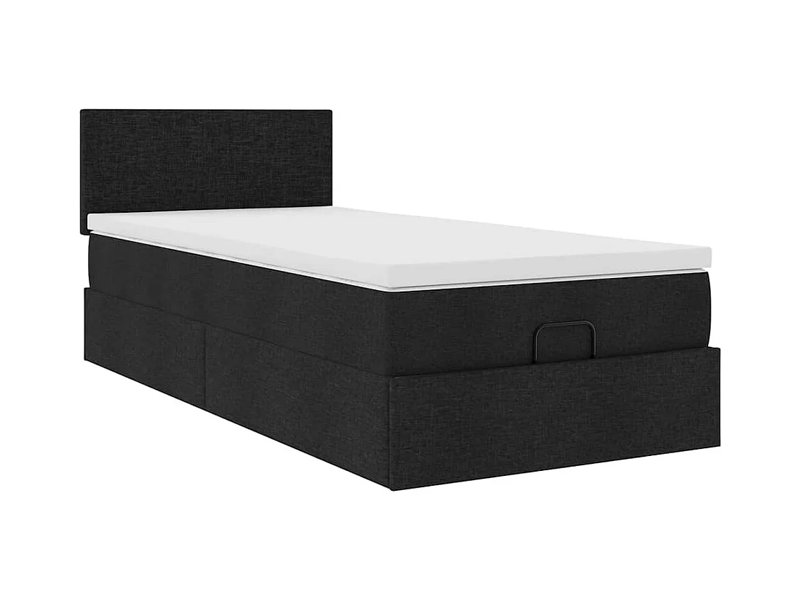 Pouf Letto con Materasso Nero 100x200 cm in Tessuto