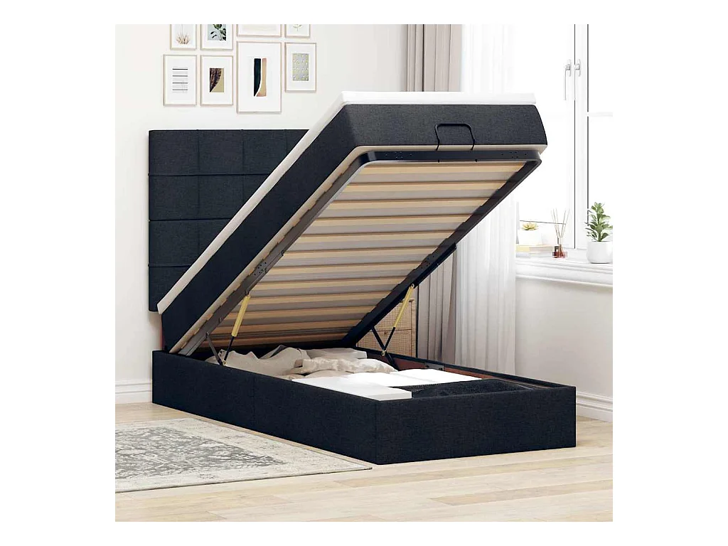 Struttura Letto Pouf con Materasso Nero 90x200 cm in Tessuto