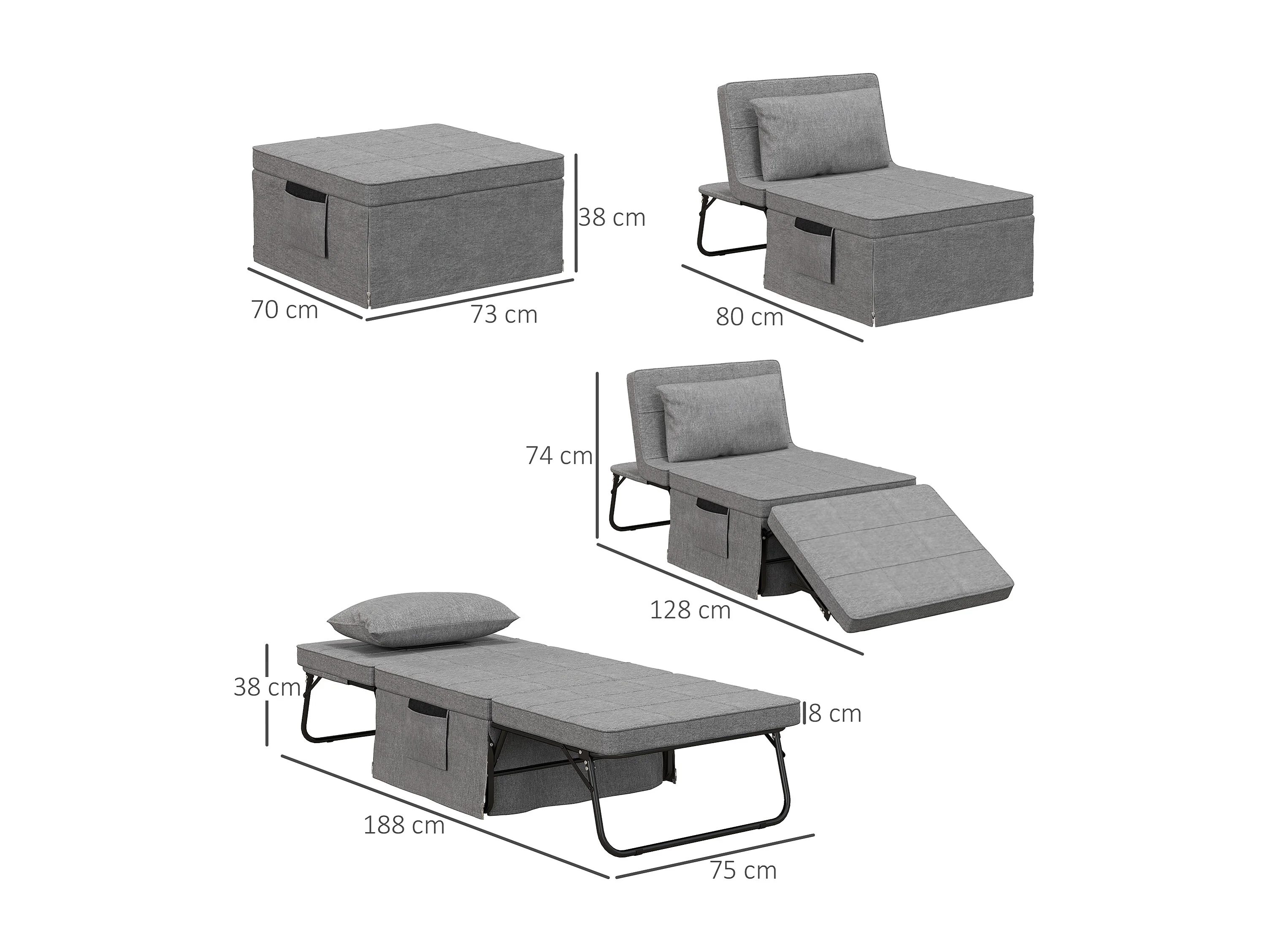 Pouf letto pieghevole multiuso con schienale reclinabile grigio