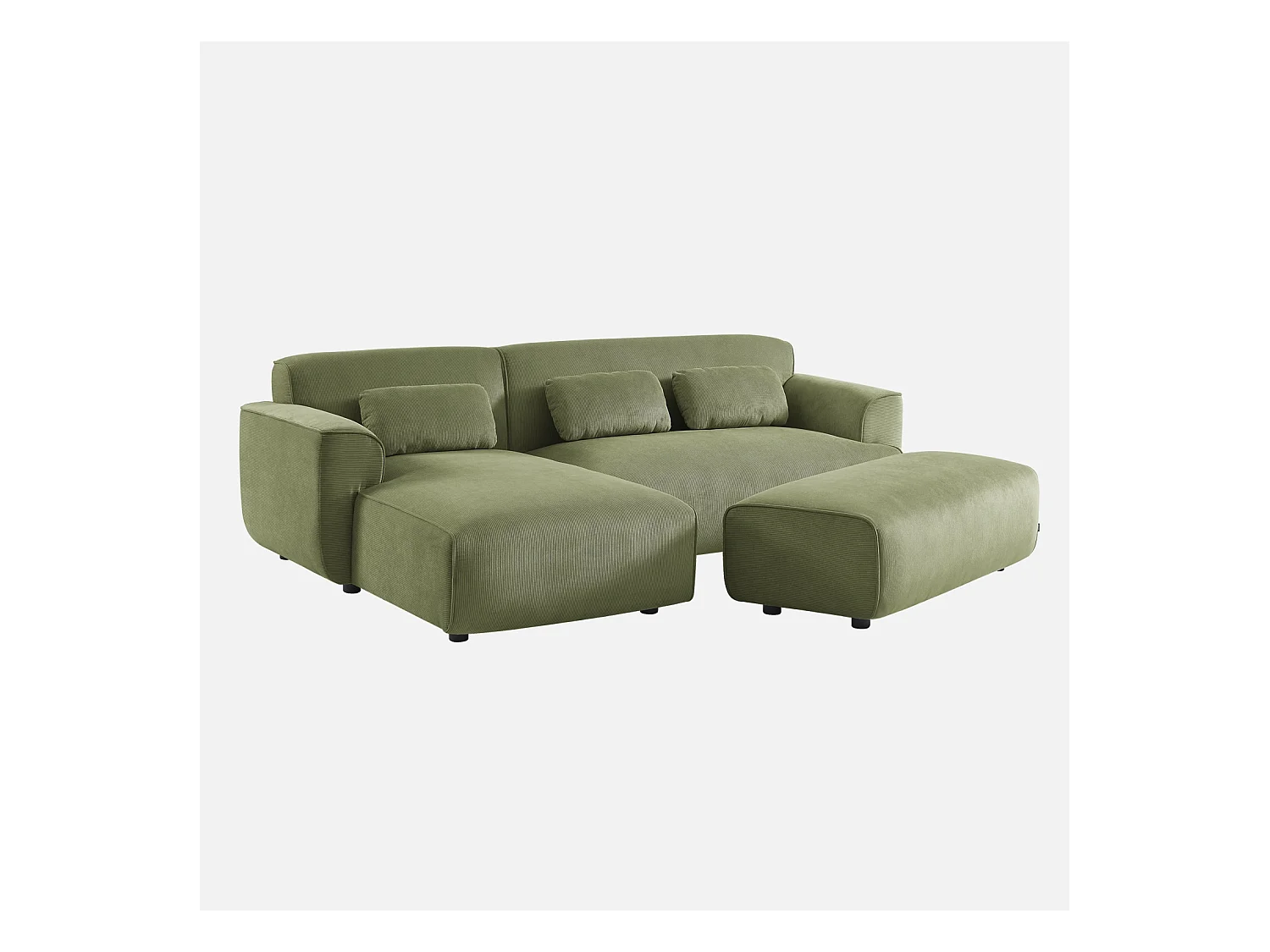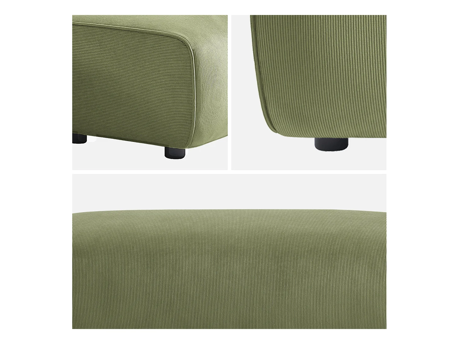 Pouf per divano angolare wallas in velluto a coste, 2 posti, verde