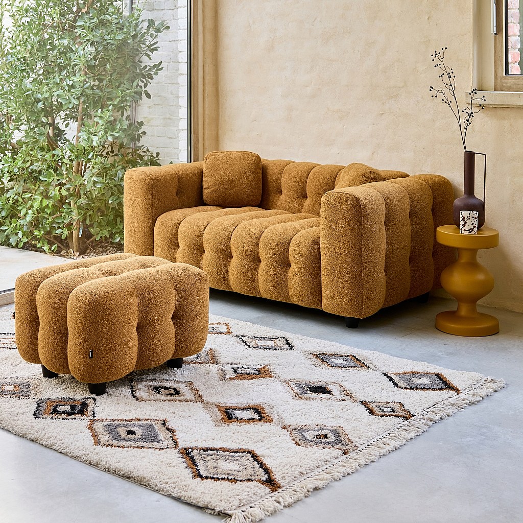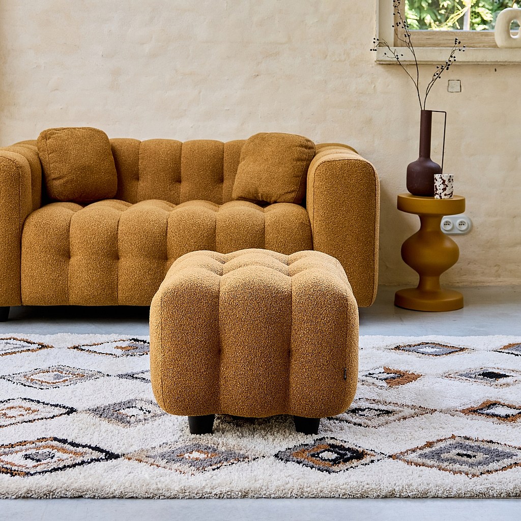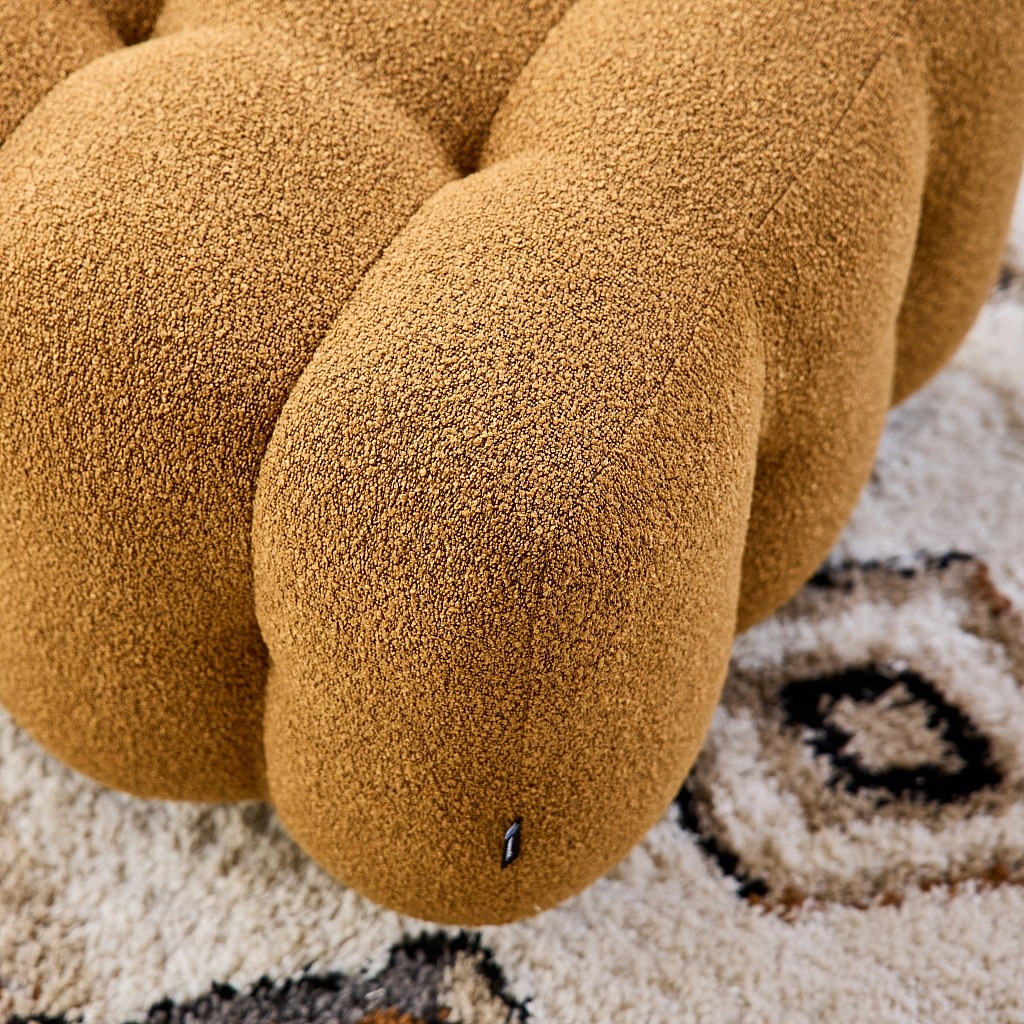 Pouf, poggiapiedi bouclé strutturata per divano a 2 posti, mostarda