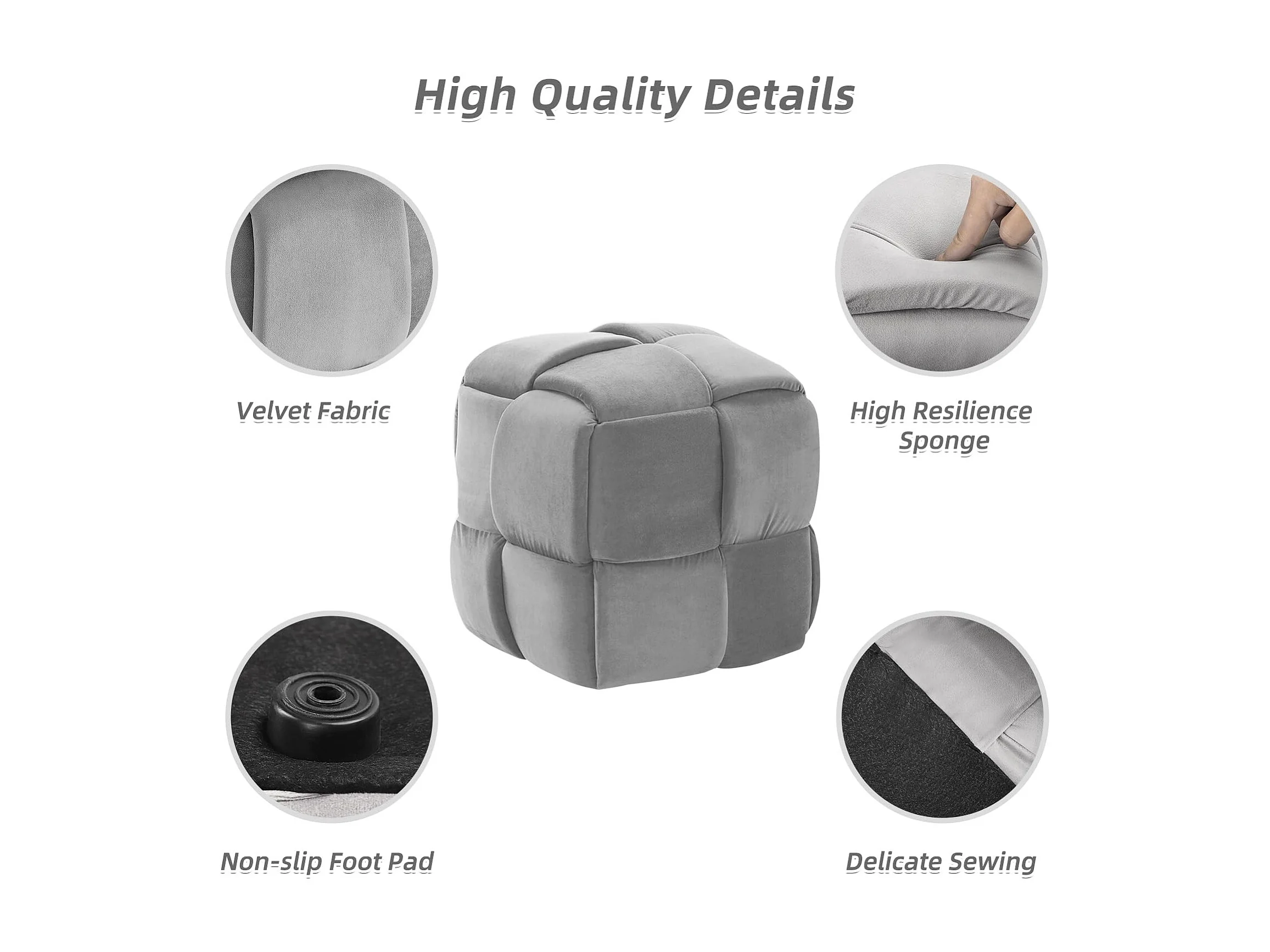 Pouf poggiapiedi in velluto, per soggiorno, quadrato, intrecciato, decorativo, moderno, 43 x 43 x 46 cm, carico massimo 140 kg, grigio