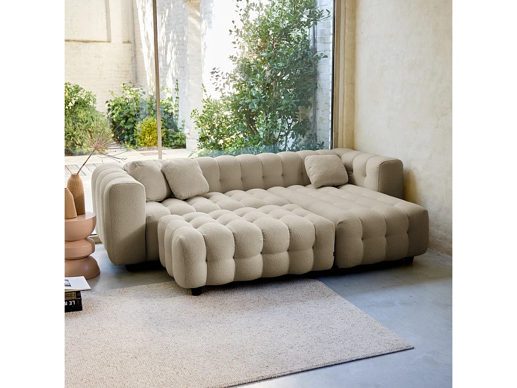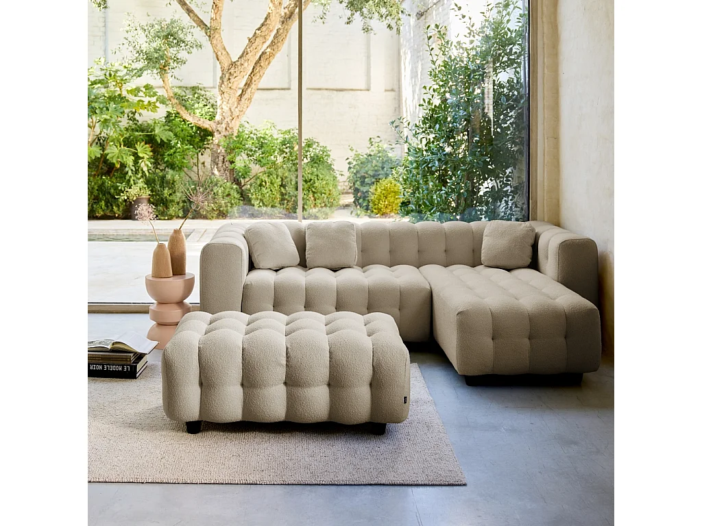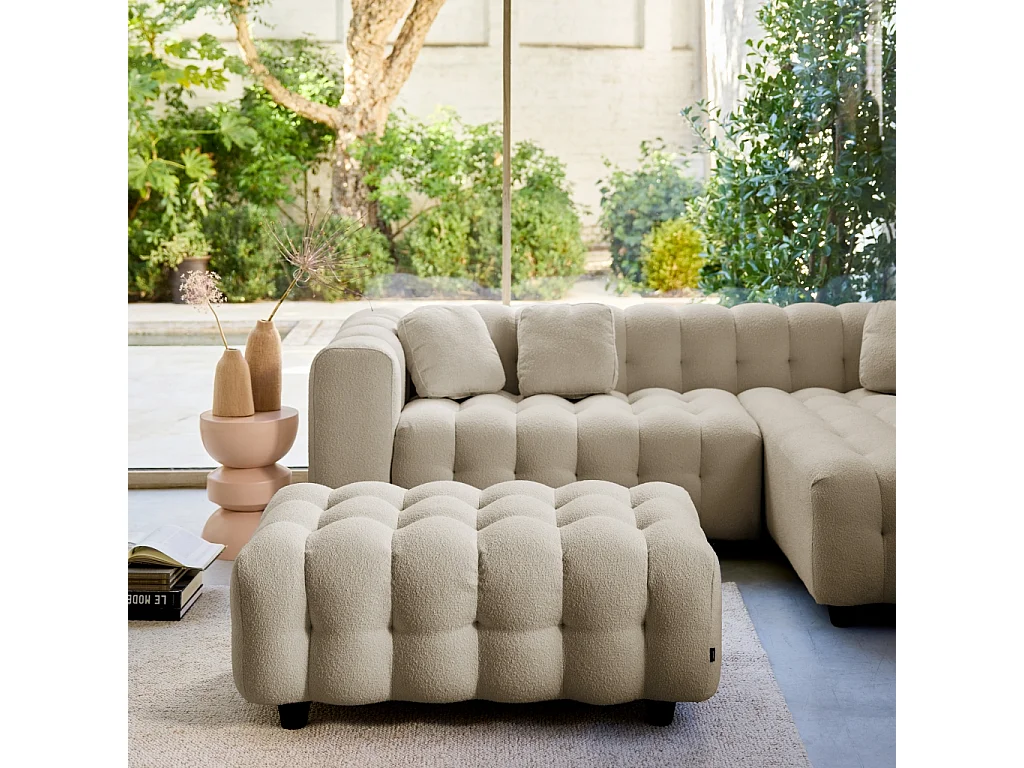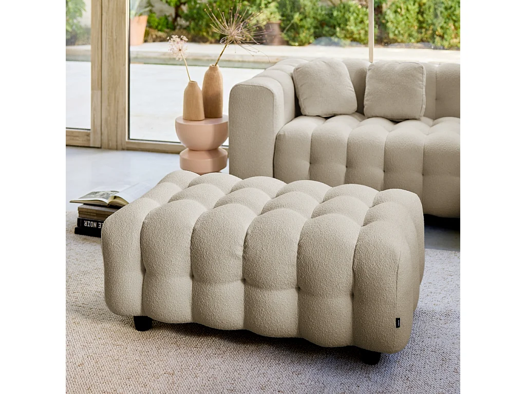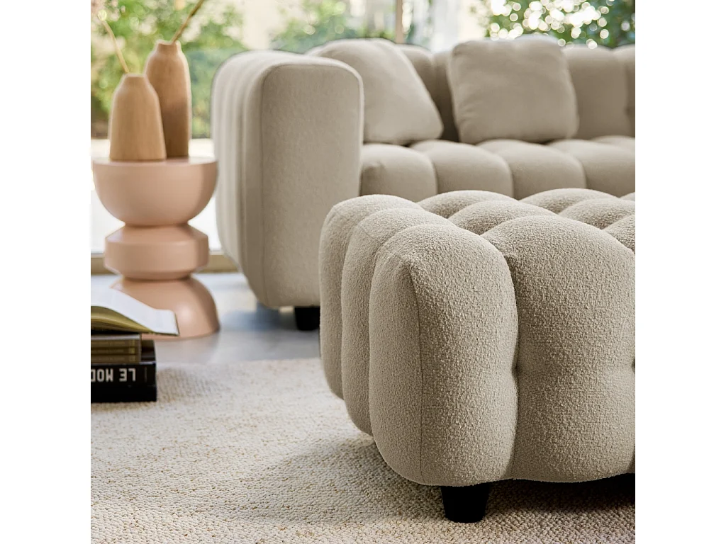 Pouf, poggiapiedi per divano 3 posti leon bouclé testurizzato, beige
