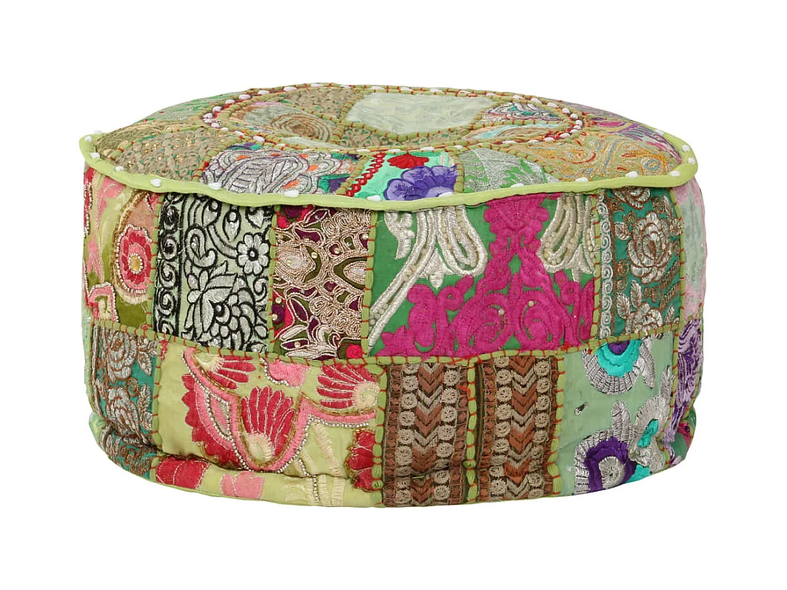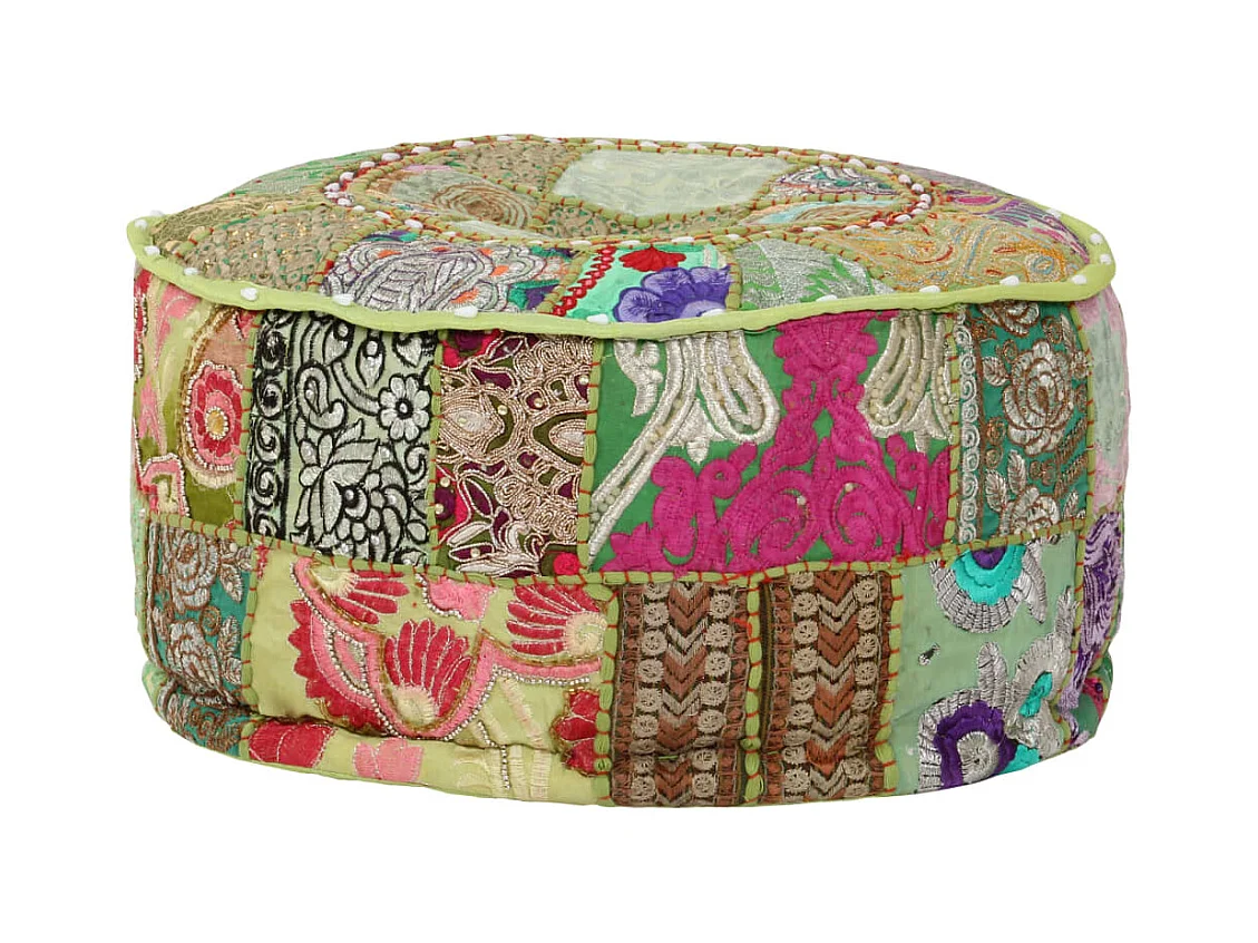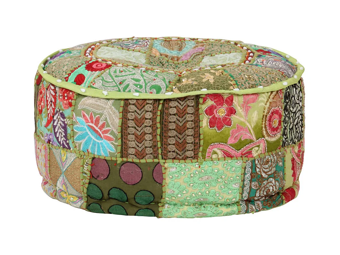 Pouf rotondo in cotone fatto a mano 40 x 20 cm verde
