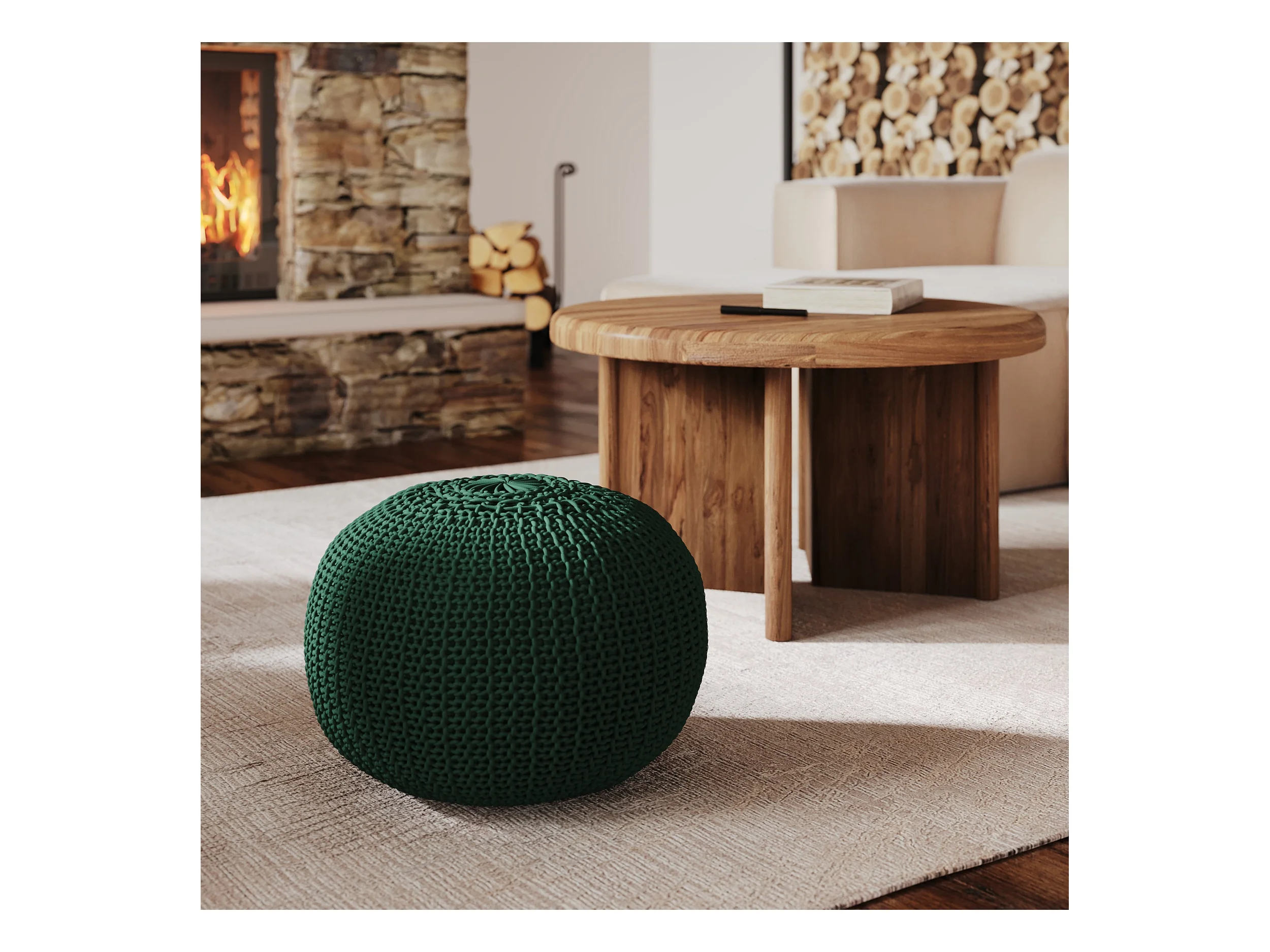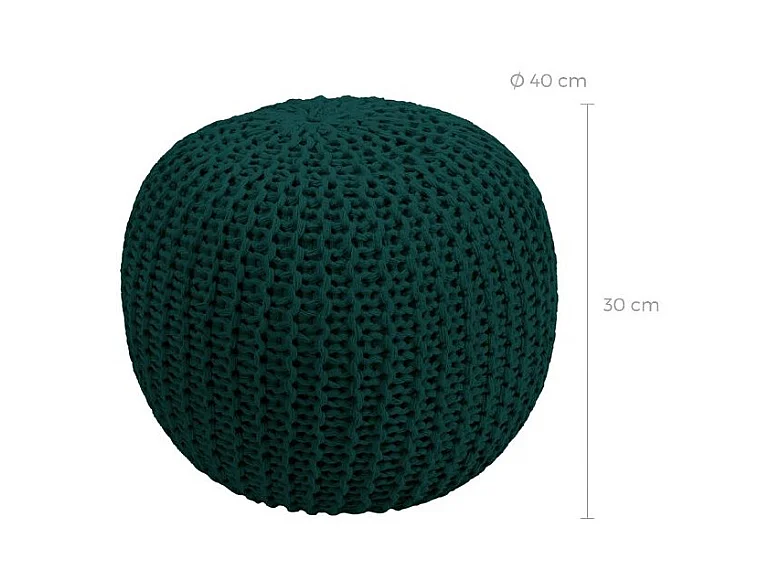 Pouf rotondo in maglia di cotone verde abete D40 cm - Elisa