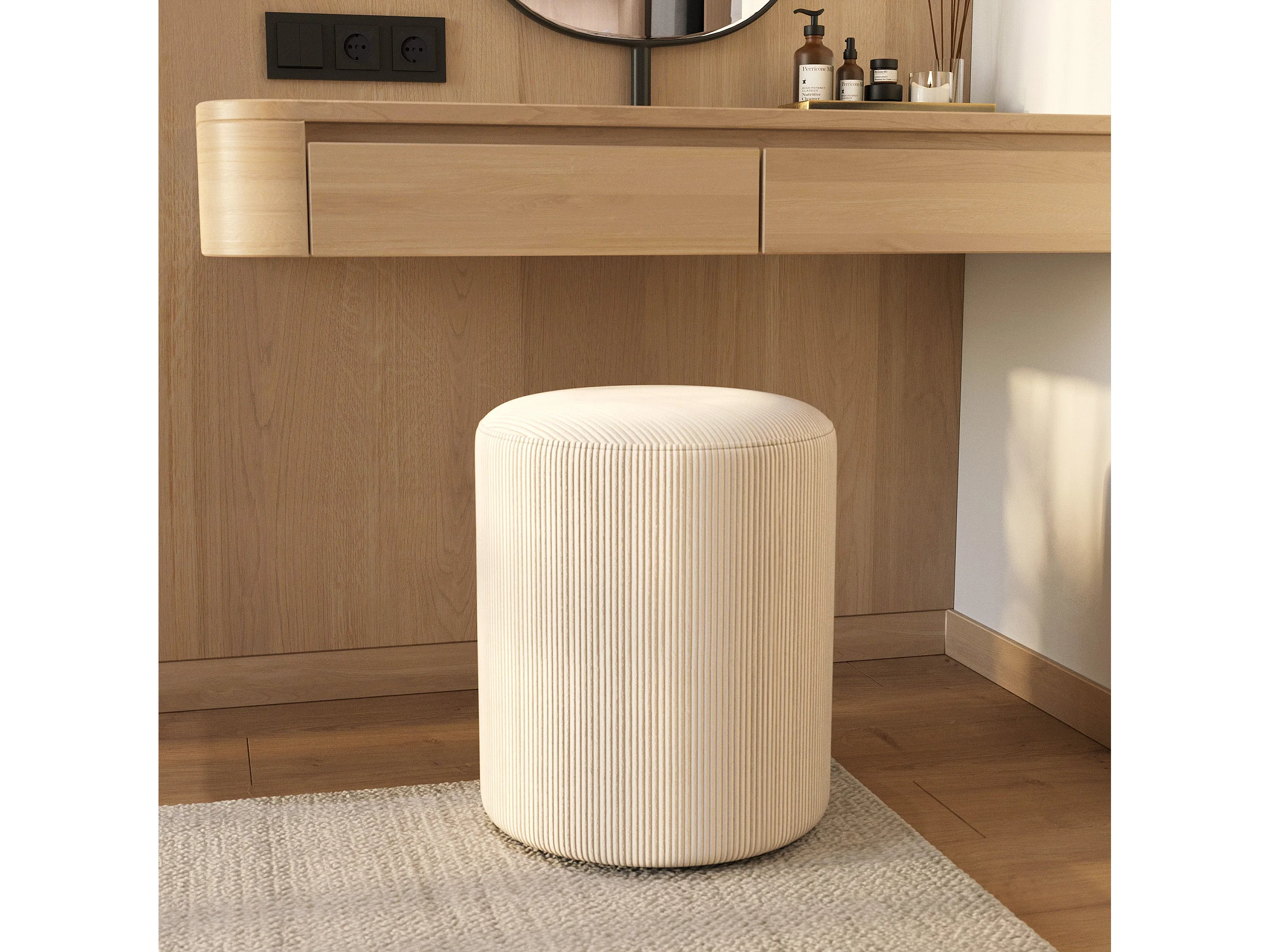 Pouf rotondo in velluto a coste beige - Lily
