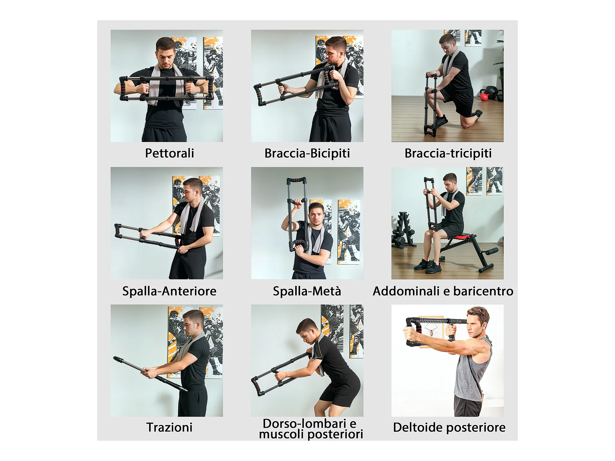 Power twister a 4 molle con resistenza da 10-50 kg in acciaio inox nero
