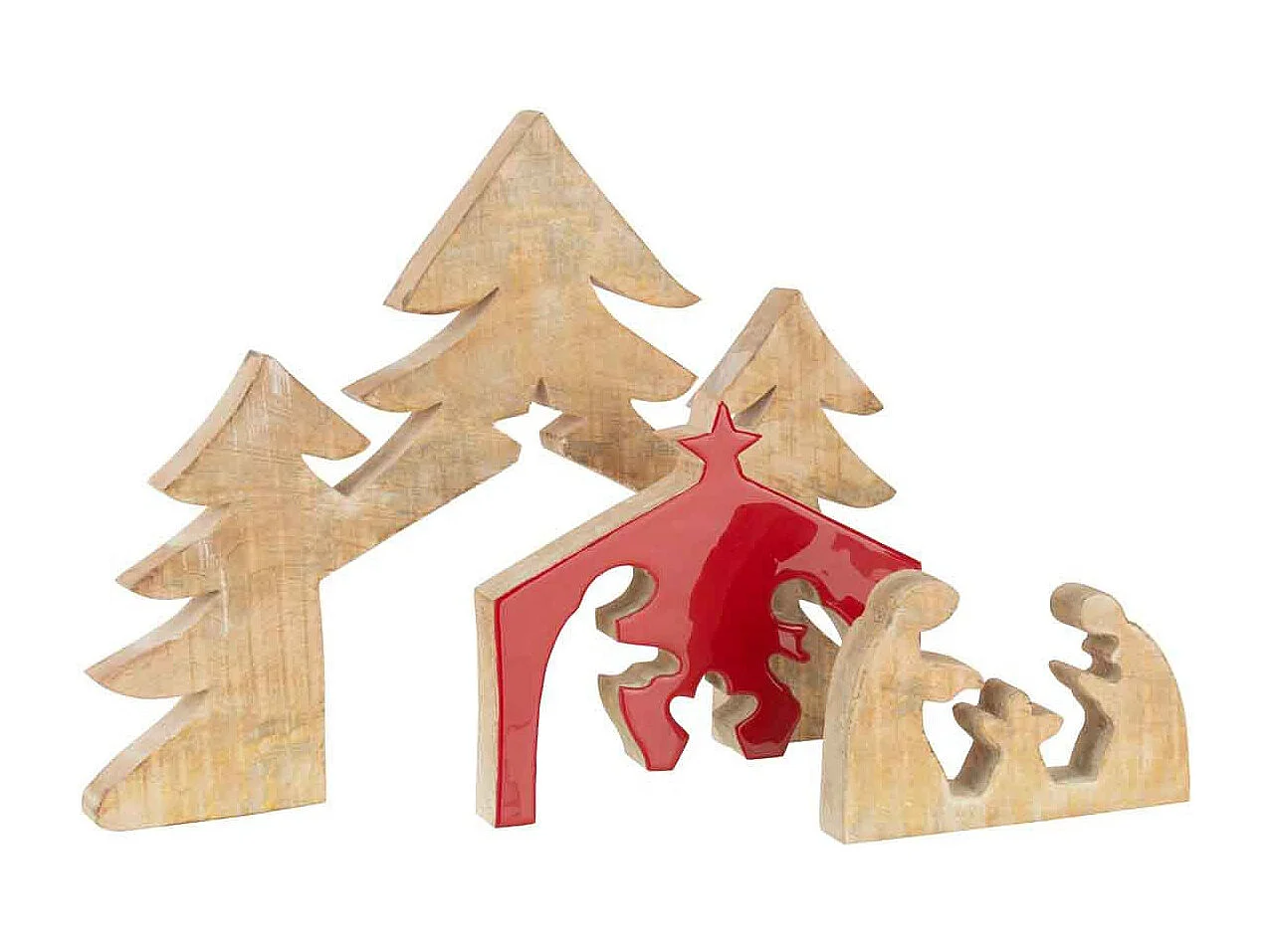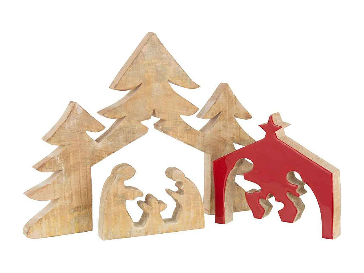 Presepe di Natale puzzle in legno di mogano rosso 55x4x40cm