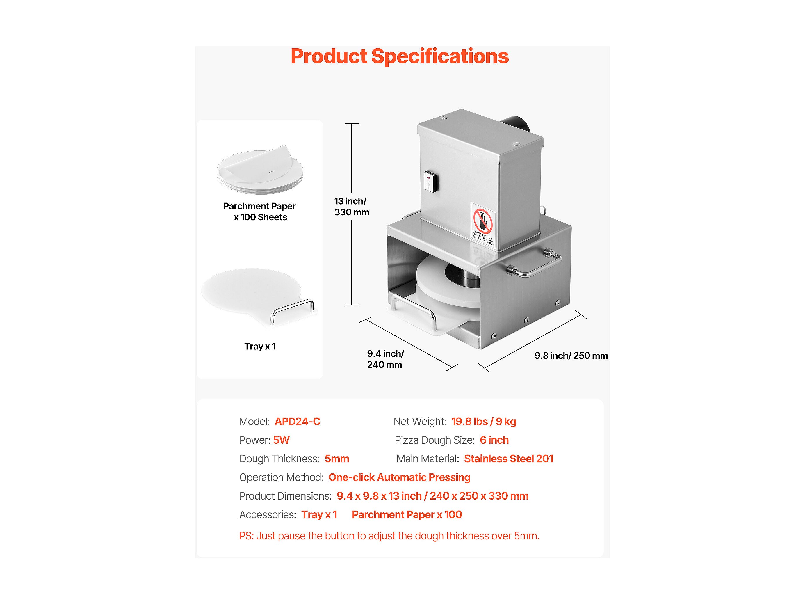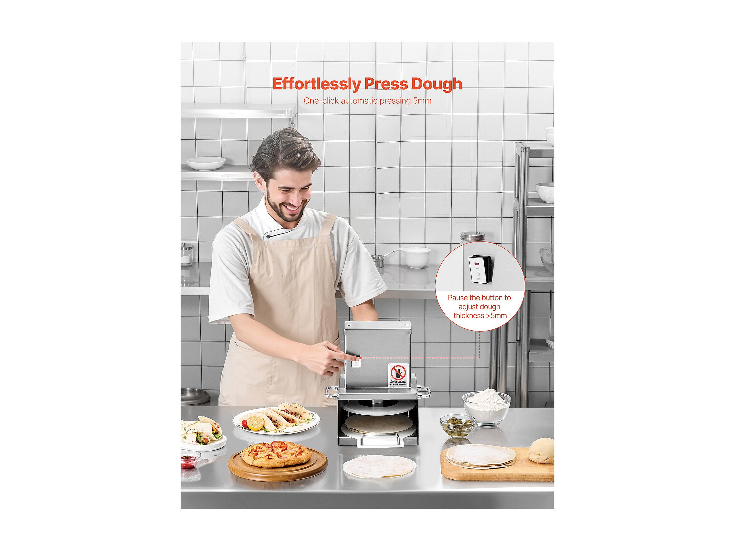 Pressa per Pasta SucceBuy Elettrica, Piastra 15 cm, Pressa per Pizza in Acciaio Inossidabile, Formatrice per Pizza Commerciale a Spessore Regolabile, per Caffè