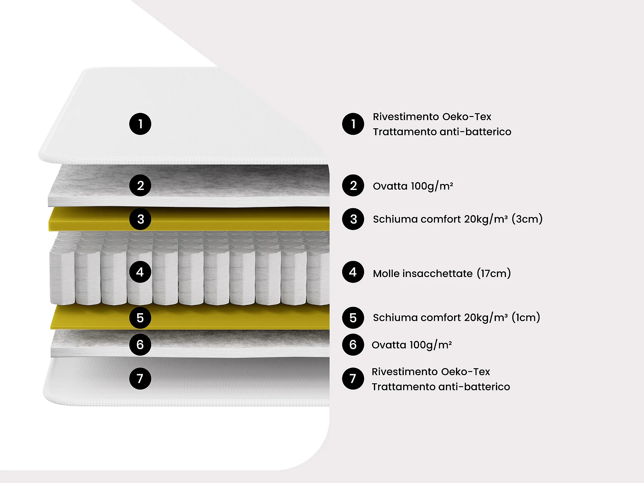 Set 160x200cm rete vano con cassetto Bianco + materasso molle insacchettate sp. 22cm - PRESTIGE di YSMÉE