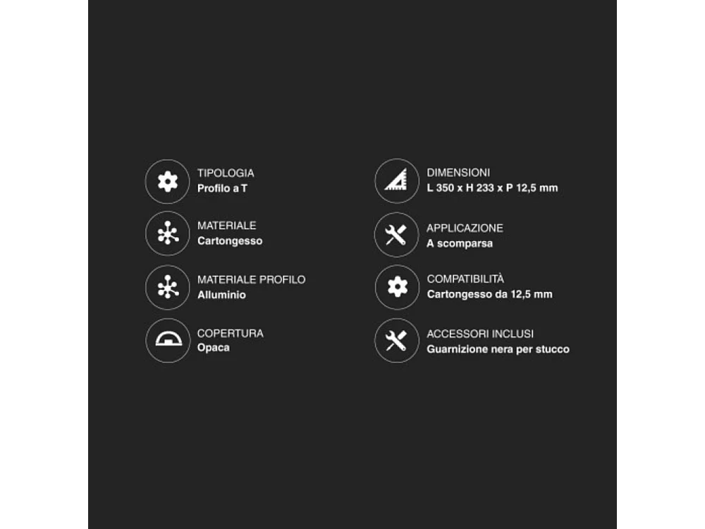Kit profilo piatto da rasare a cartongesso da 2m con copertura satinata e 2 tappi