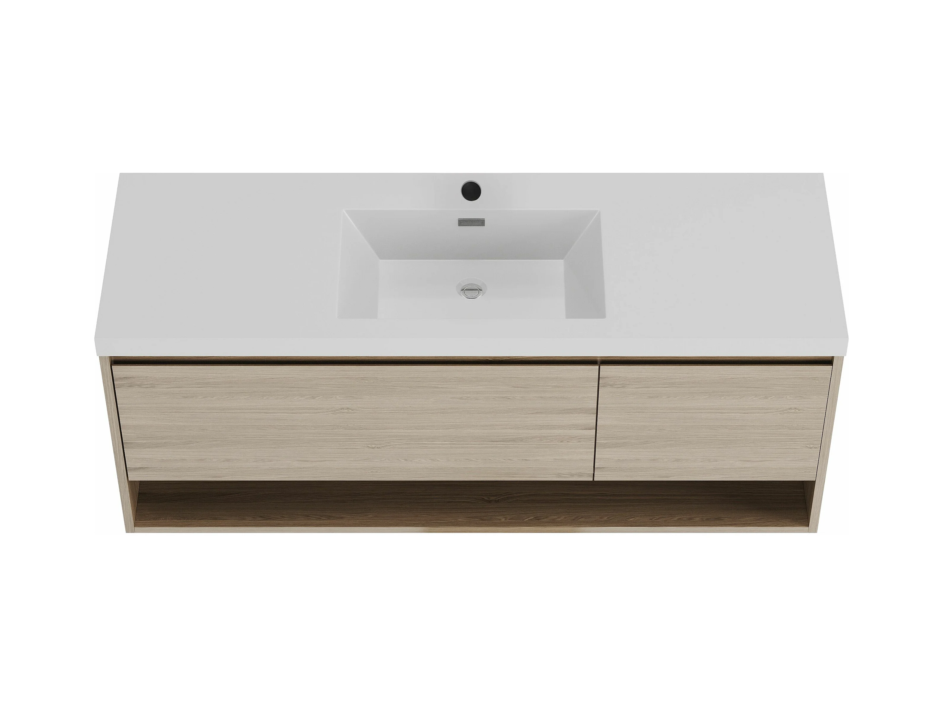 Mobile per bagno sospeso lavabo singolo 150 cm Naturale chiaro - PUJUKA