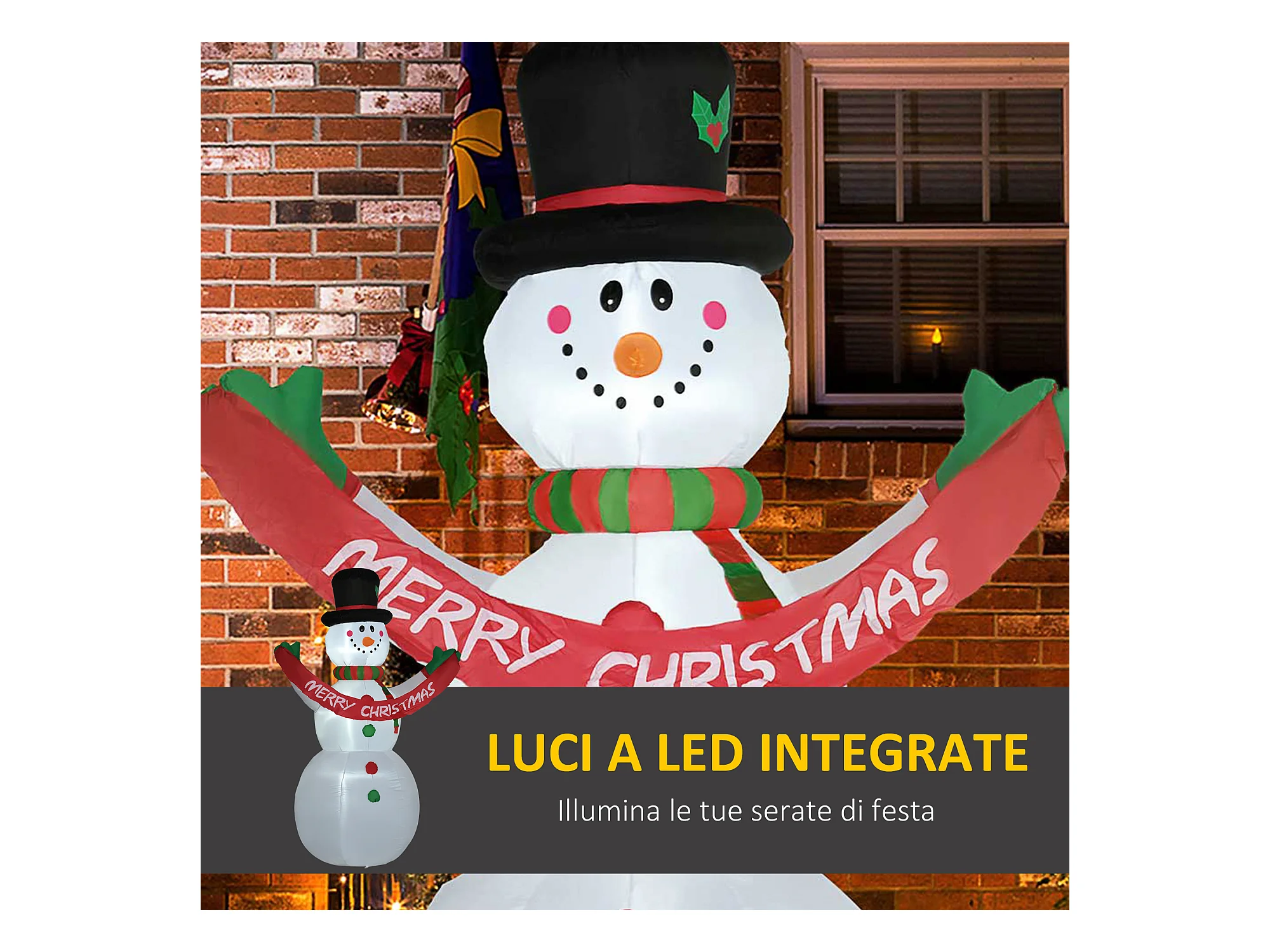Pupazzo di neve gonfiabile con luci a led in poliestere multicolore