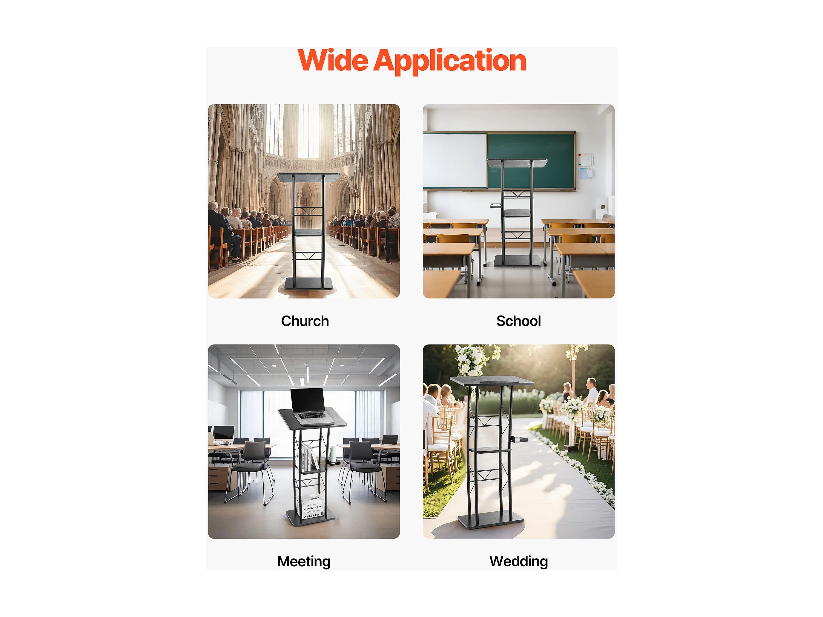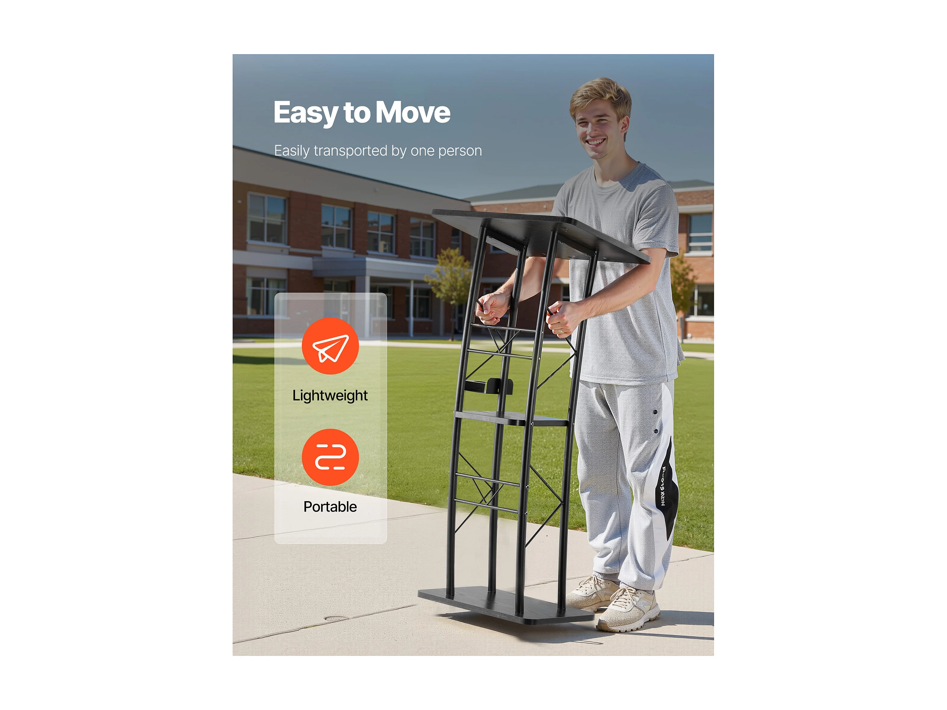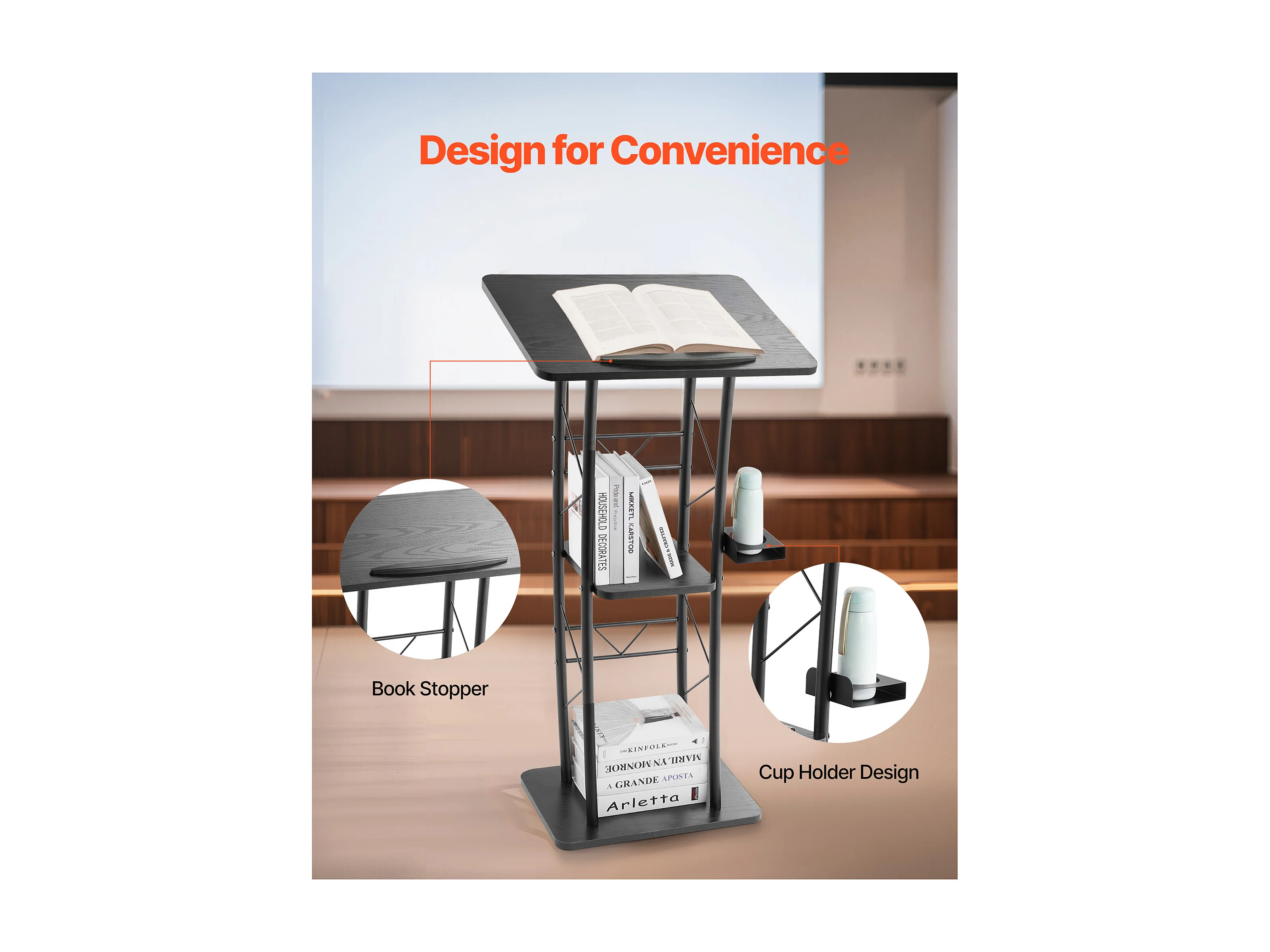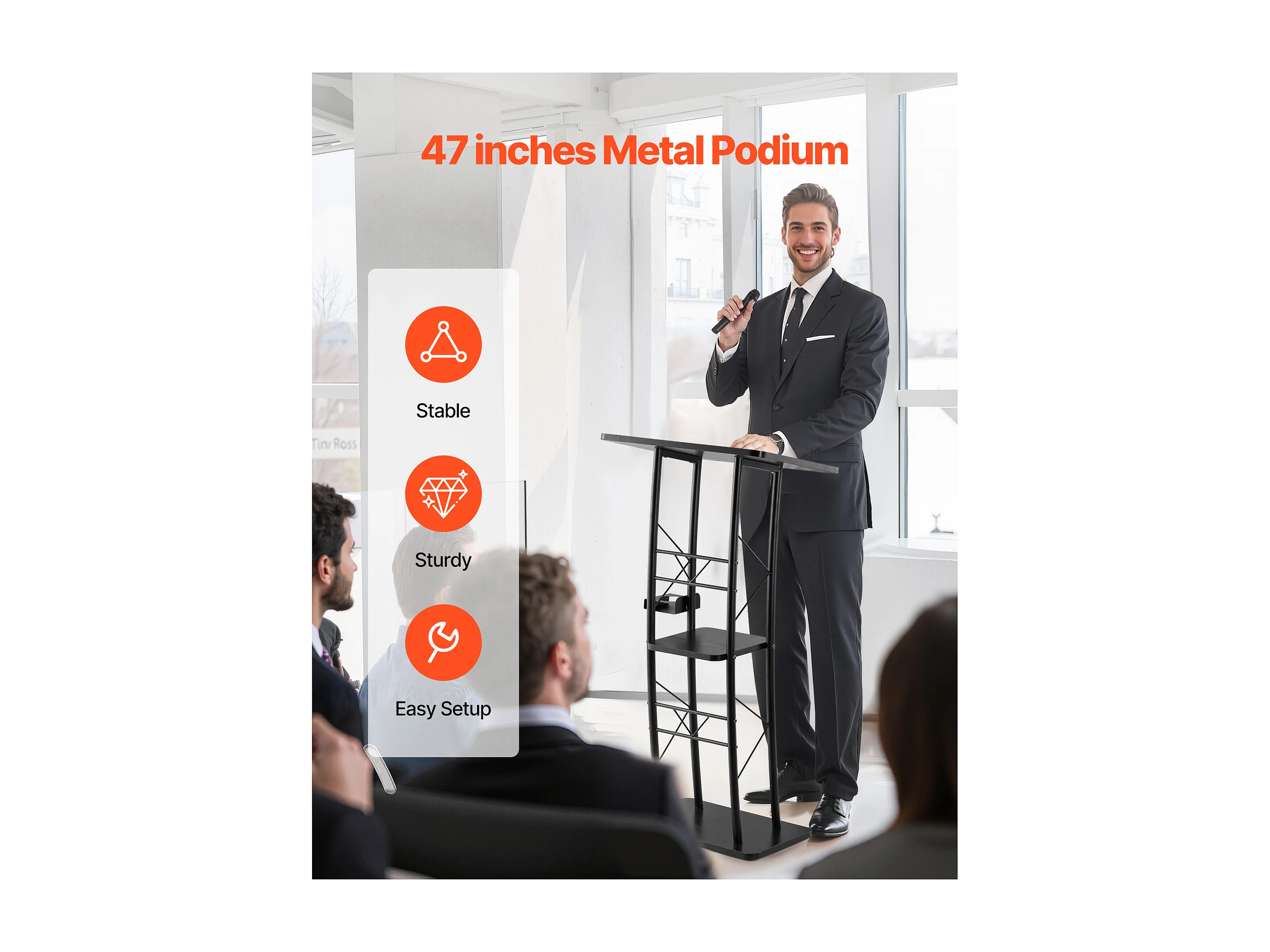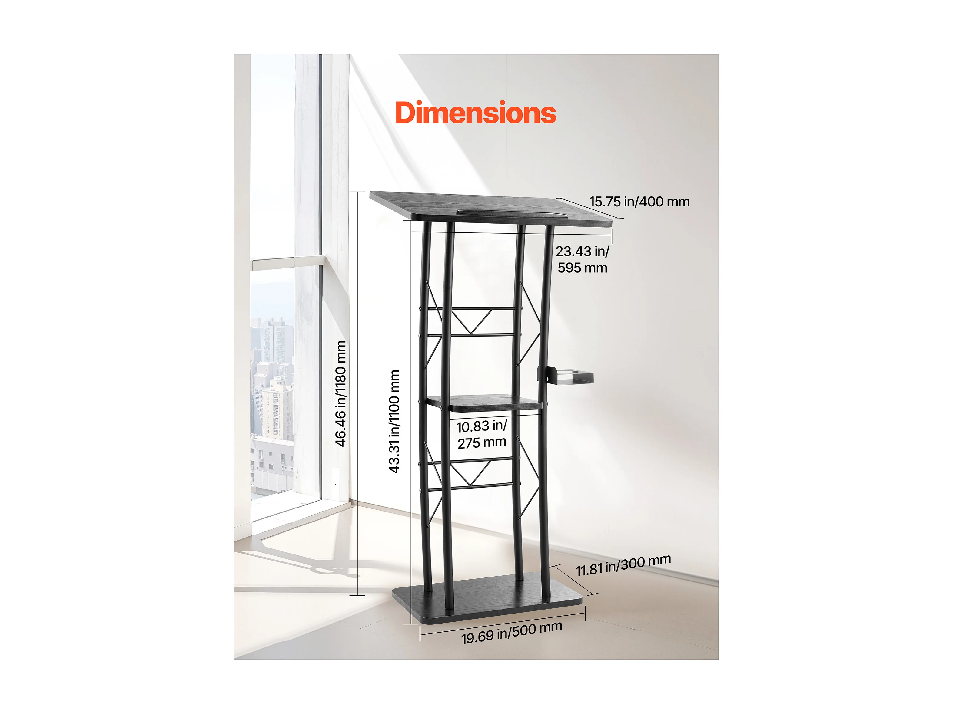 Pupitre da Conferenza SucceBuy, 118 cm, Podio in Metallo, Leggio per Presentazioni con Ampia Superficie di Lettura, Portabicchieri, per Ufficio Scuola