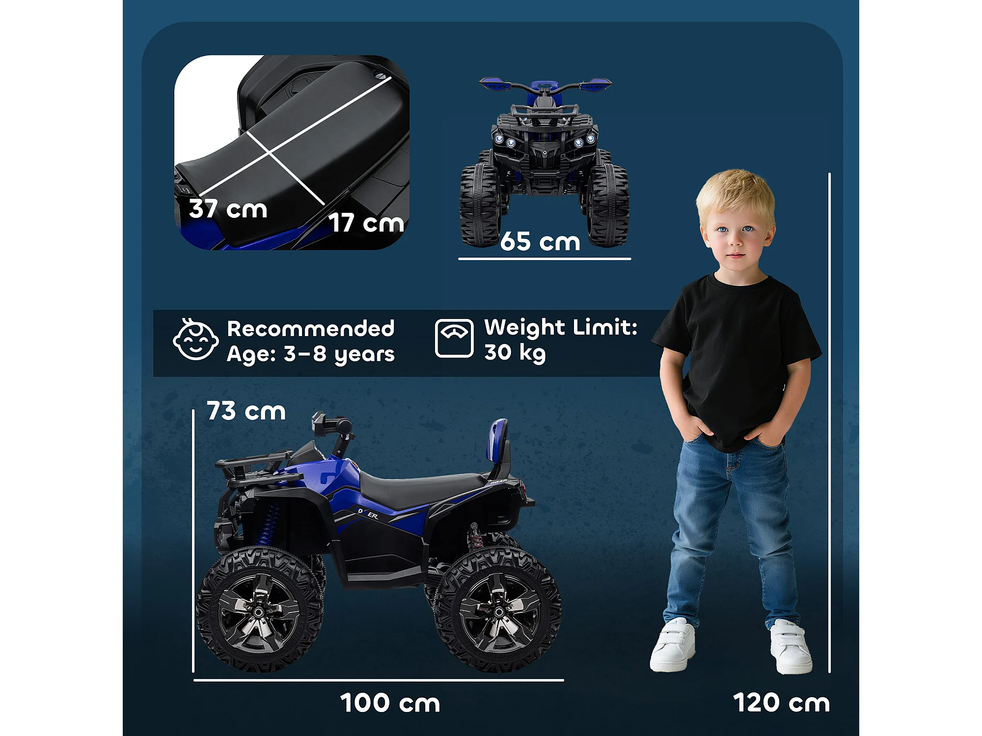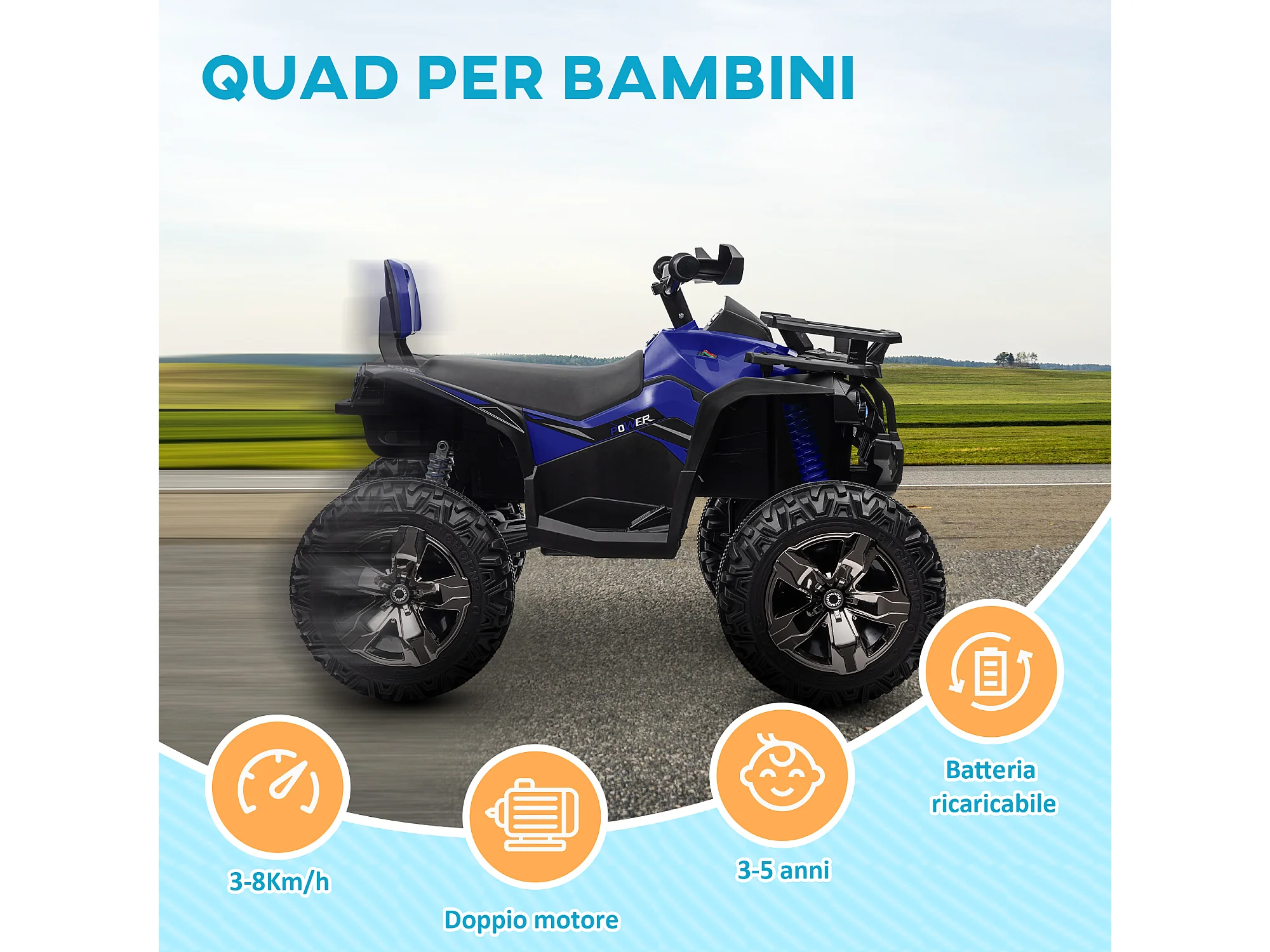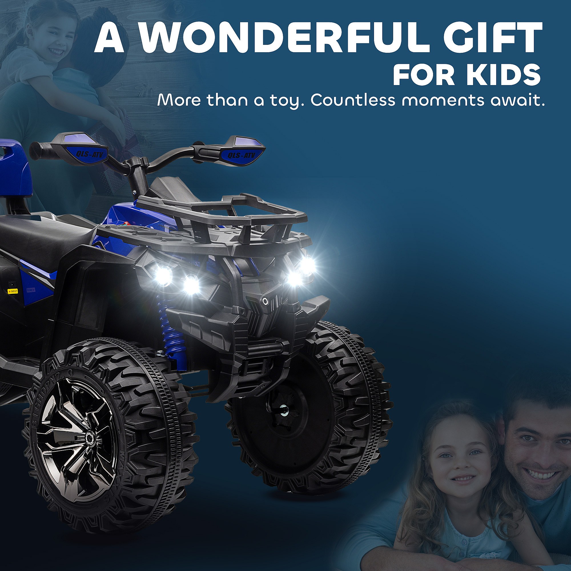 Quad elettrico per bambini 12v con fari e pedale in pp e metallo blu