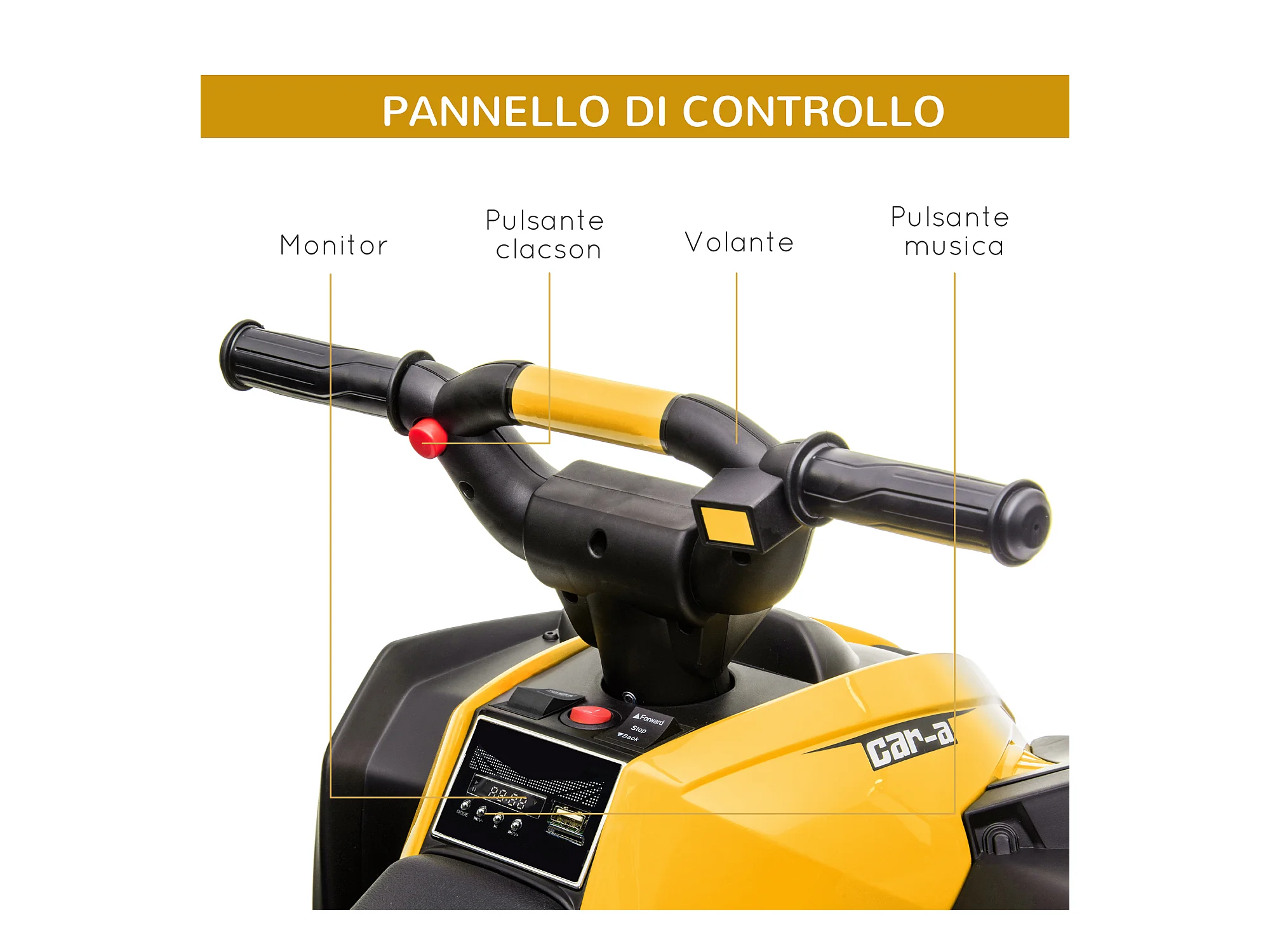 Quad per bambini 12v 2 velocità ruote con clacson giallo