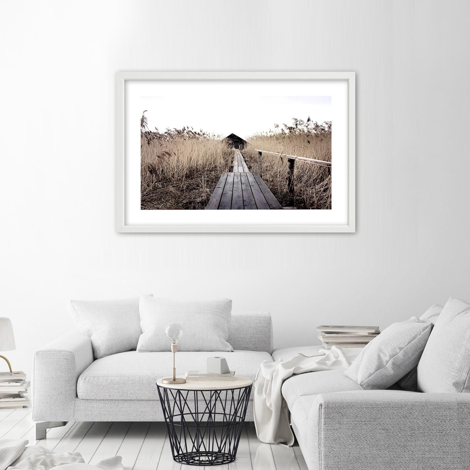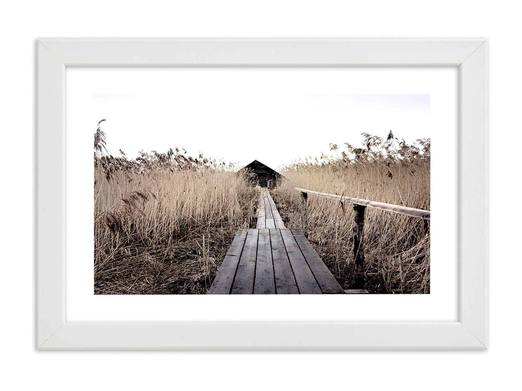 Quadro con cornice, Vecchio ponte in un canneto alto - 45x30