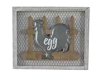 Quadro legno metallo gallina egg cm 46x38x3