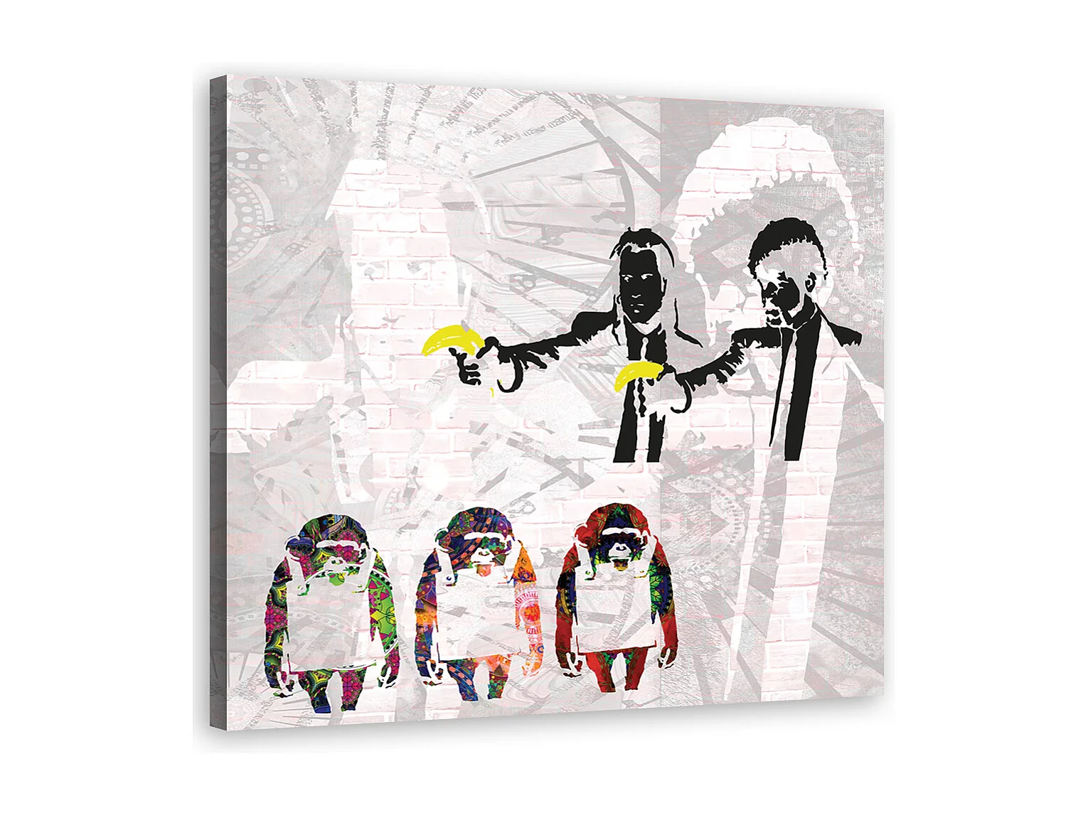 Quadro su tela, Banksy Pulp Fiction and Monkeys - 50x50