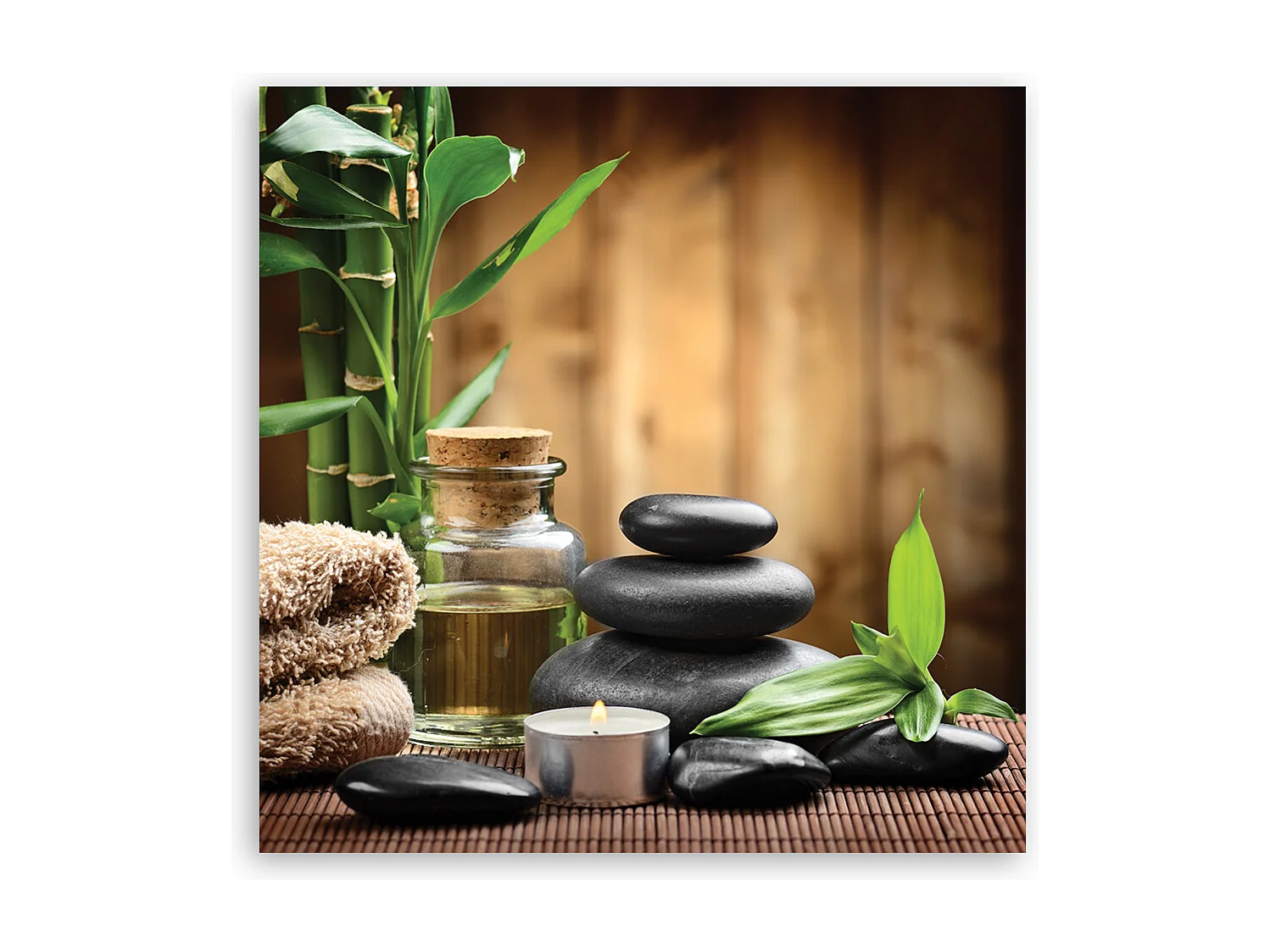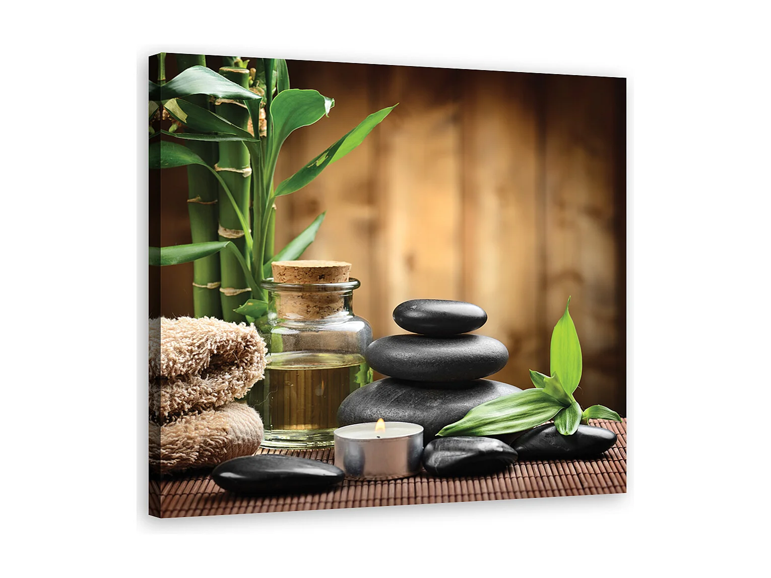 Quadro su tela, Composizione di zen da pietre nere e bamb๠- 40x40