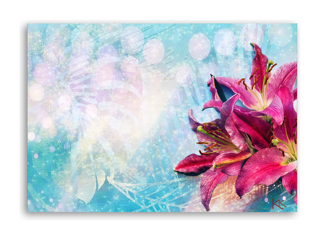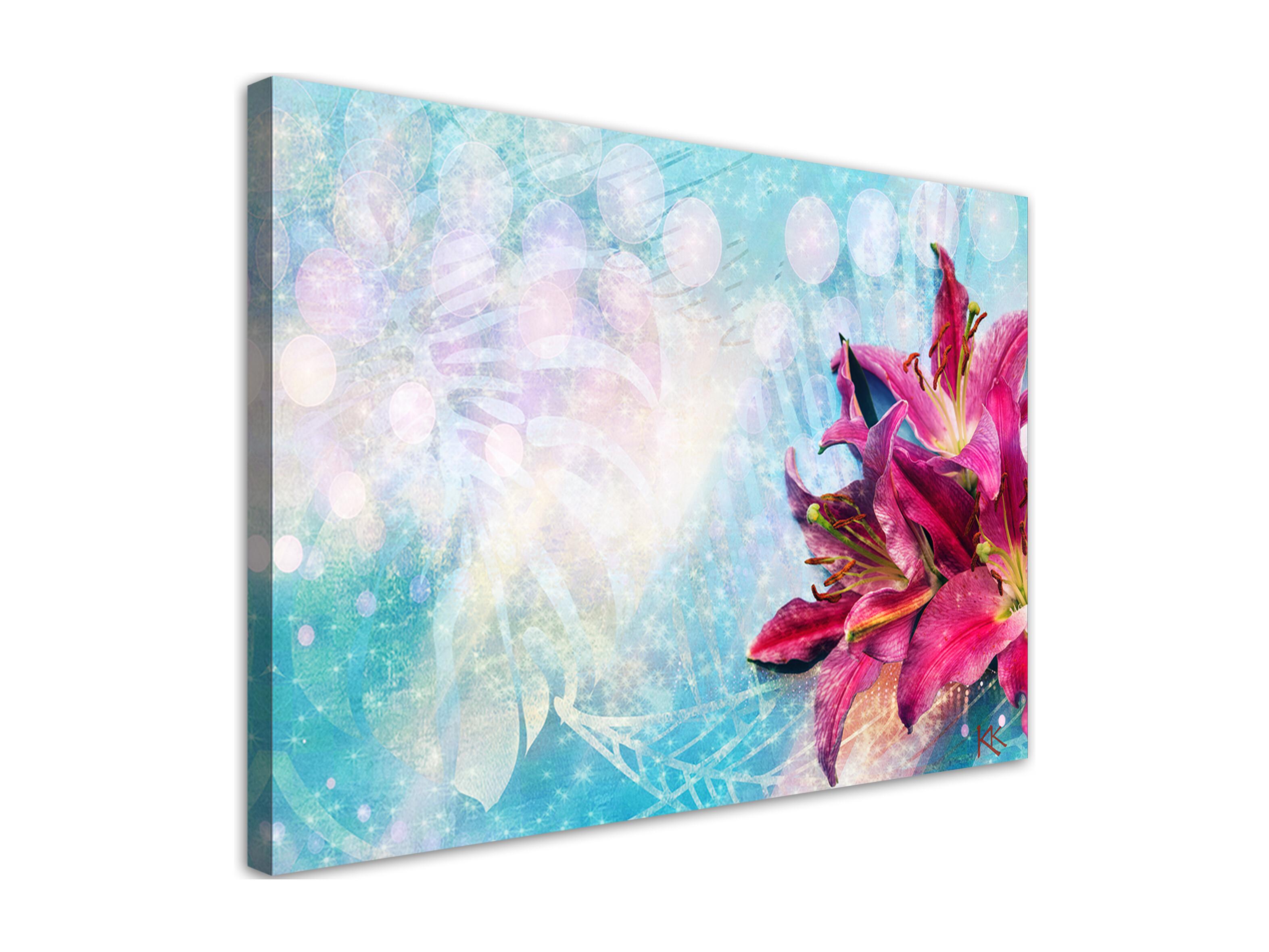 Quadro su tela, Fiori rosa su uno sfondo blu - 120x80