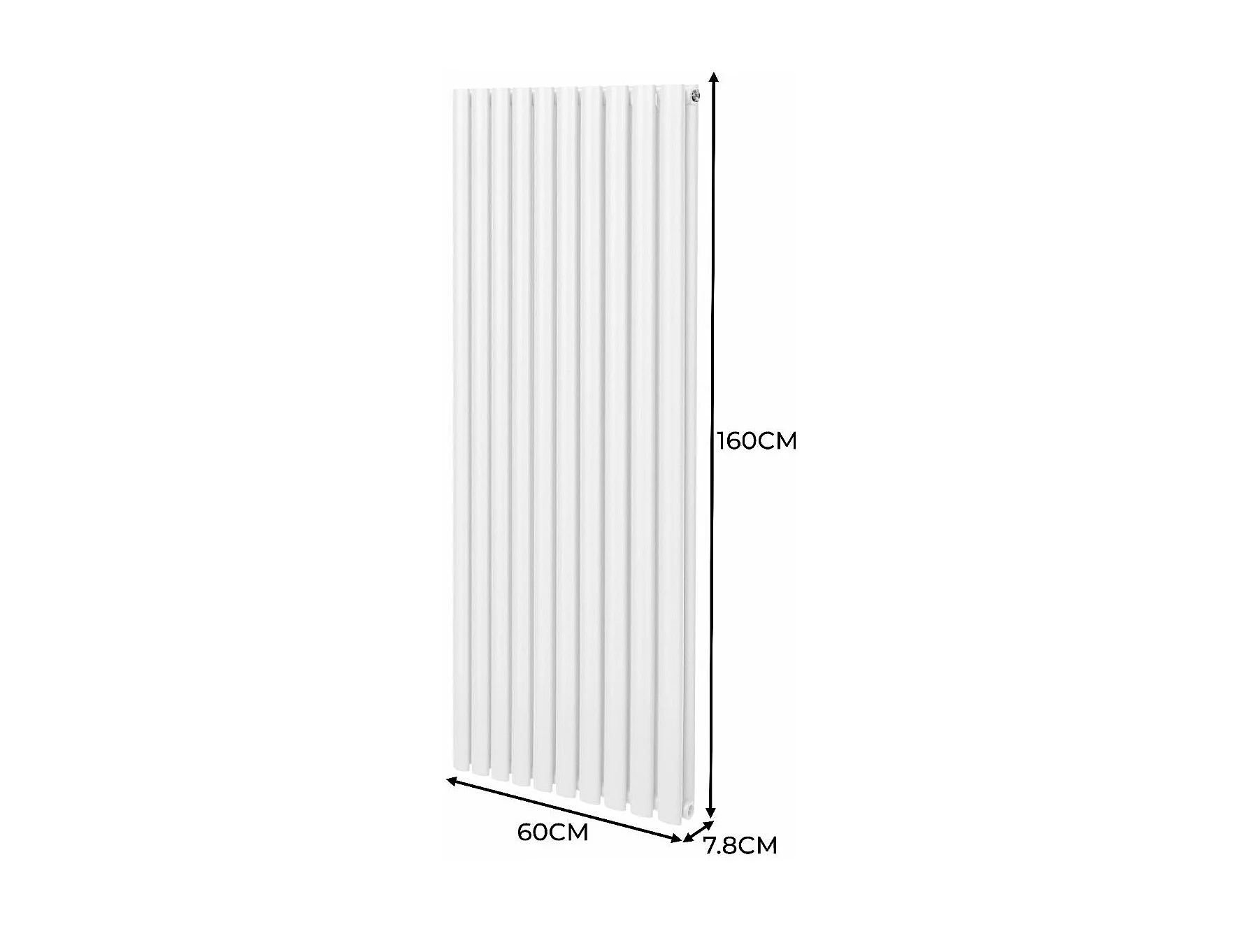 Radiatore a colonna ovale 1600mm x 600mm Designer Doppio pannello Termosifone Bianco Acciaio Orizzontale Inclusi Spazzola per la pulizia Kit di fissaggio e staffe