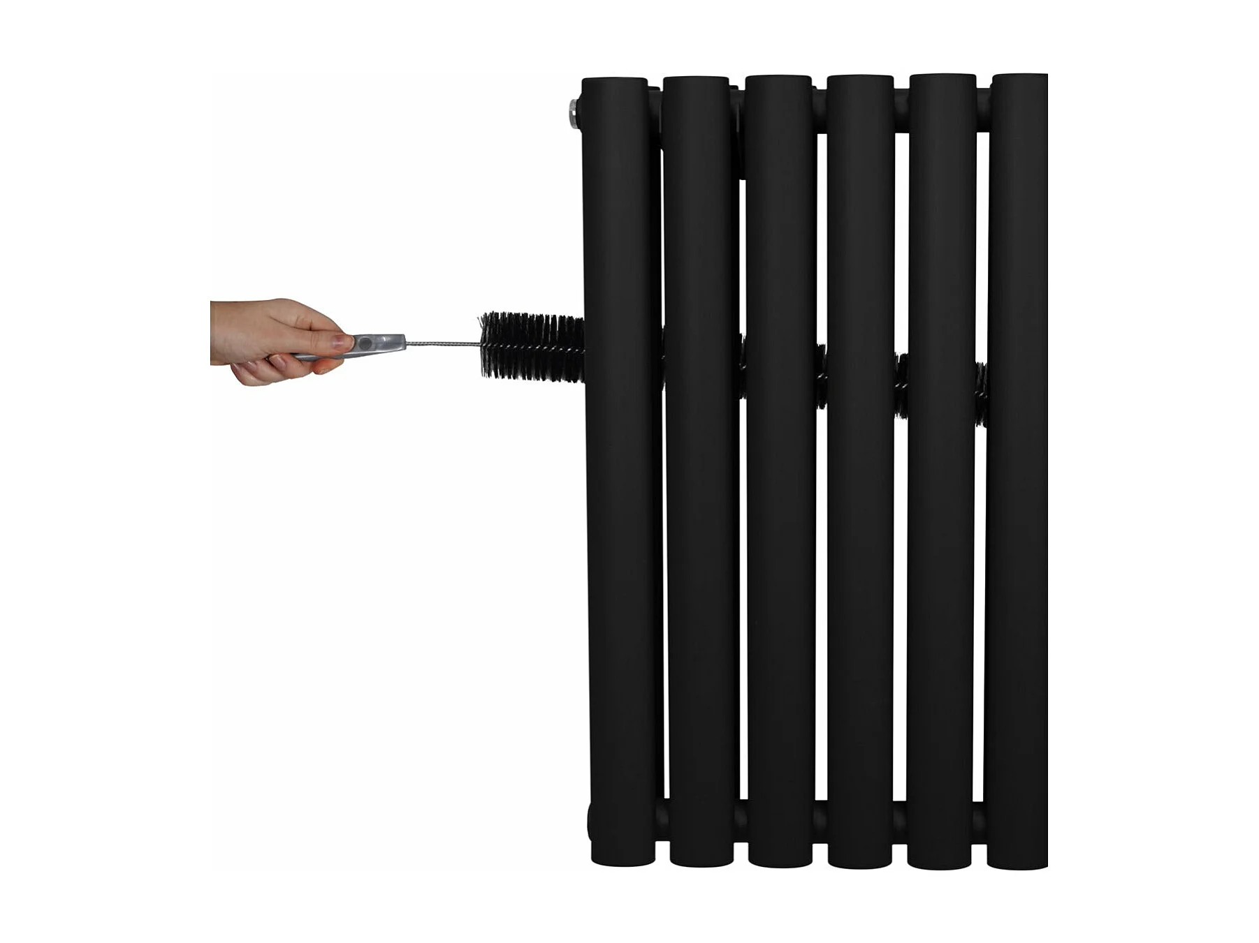 Radiatore a colonna ovale 600 mm x 1020mm Designer Doppio pannello Termosifone Nero Acciaio Orizzontale Inclusi Spazzola per la pulizia Kit di fissaggio e staffe