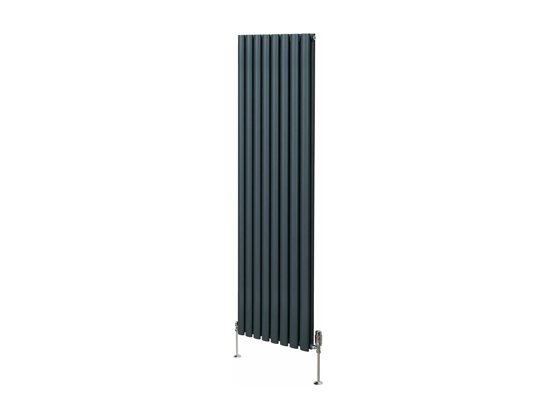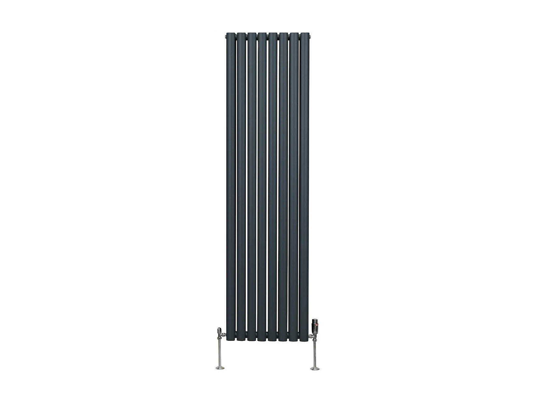 Radiatore a colonna ovale e valvole cromate TRV - 1800mm x 480mm - Grigio antracite