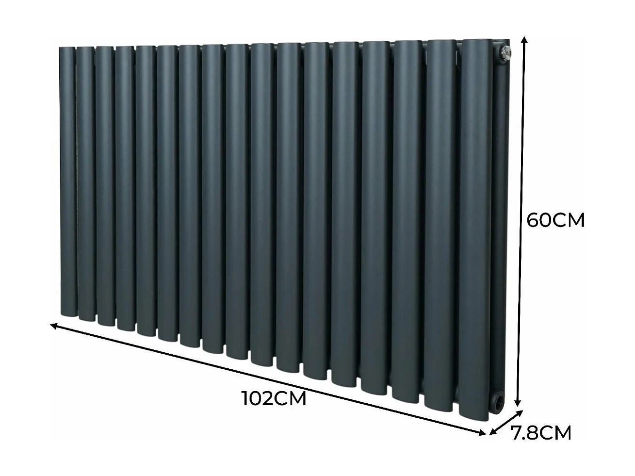 Radiatore a colonna ovale e valvole cromate TRV - 600 mm x 1020mm - Grigio Antracite
