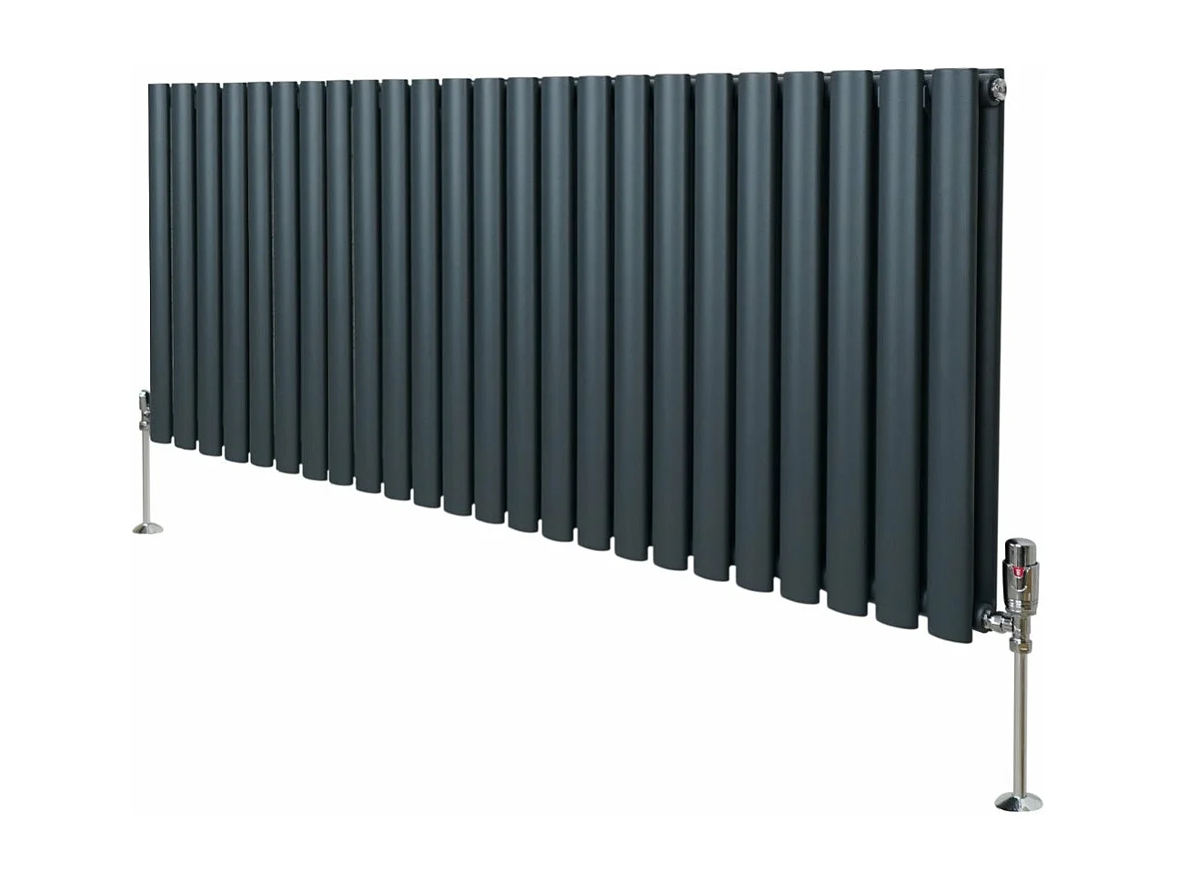 Radiatore a colonna ovale e valvole cromate TRV - 600 mm x 1200mm - Grigio anthracite