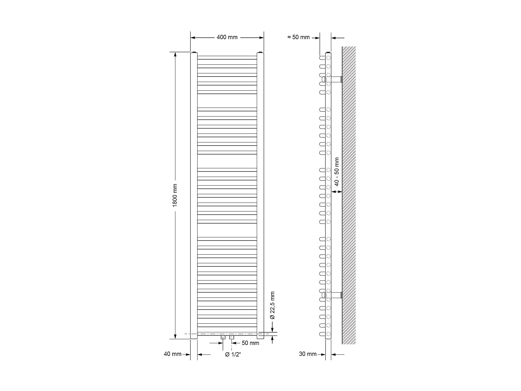 Radiatore da bagno Sahara bianco diritto attacco laterale calorifero 400x1200 mm