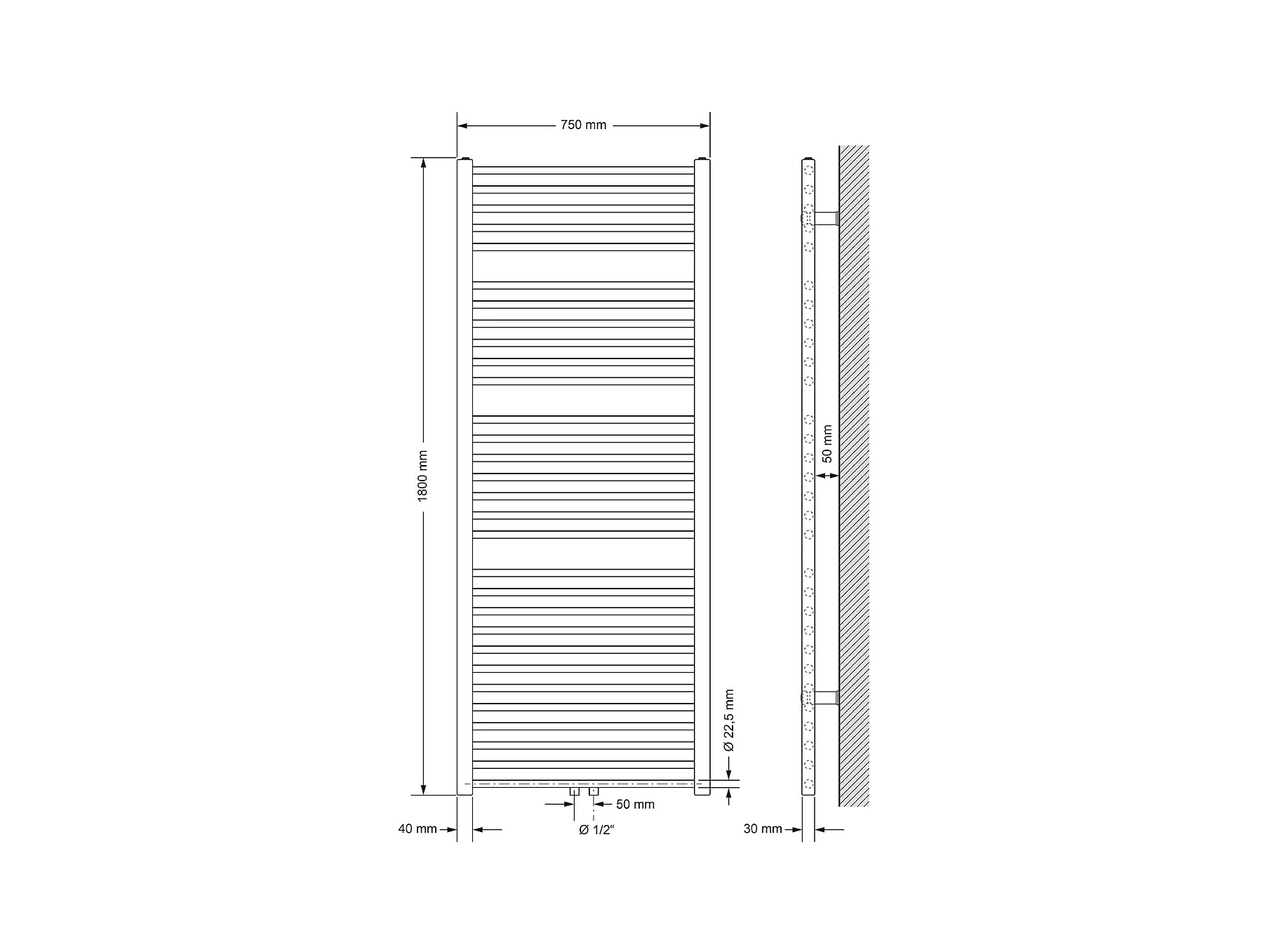 Radiatore da bagno termosifone scaldasalviette attacco laterale bianco 50x180 cm