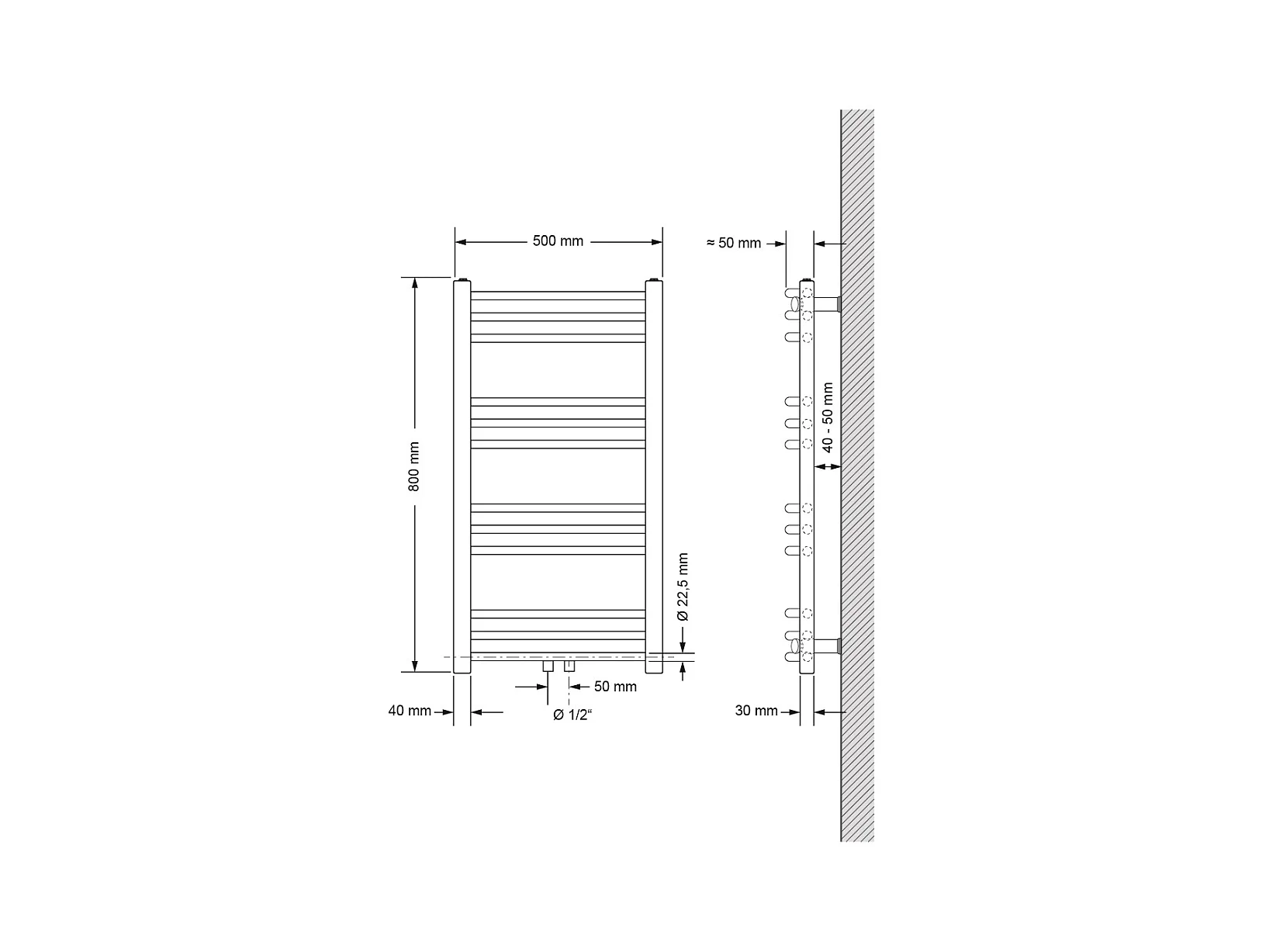 Radiatore bagno Radiatore Sahara attacco laterale scaldasalviette Cromo 50x150cm