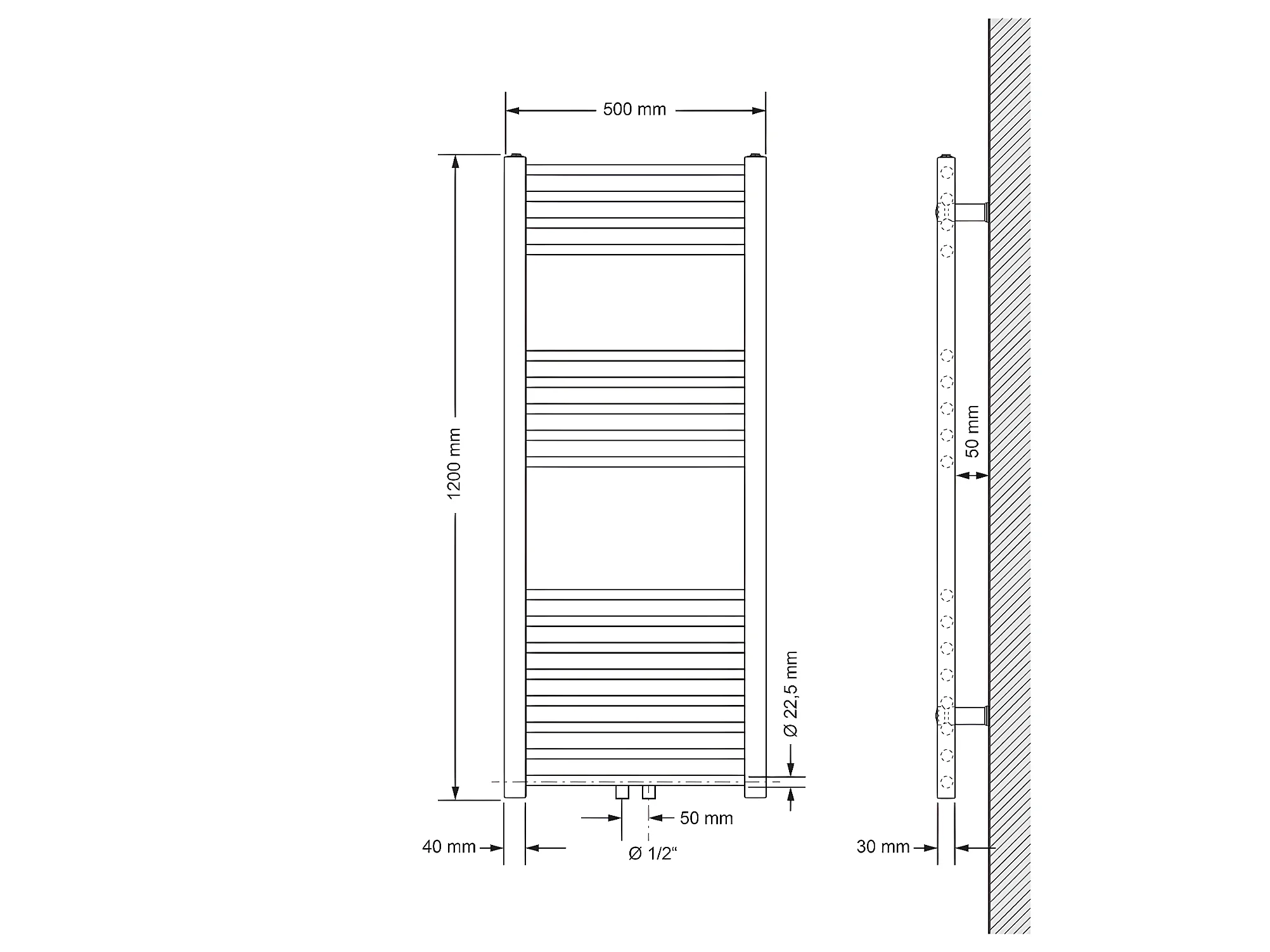Radiatore da bagno Radiatore Sahara connessione centrale Scaldasalviette Nero 50x150cm