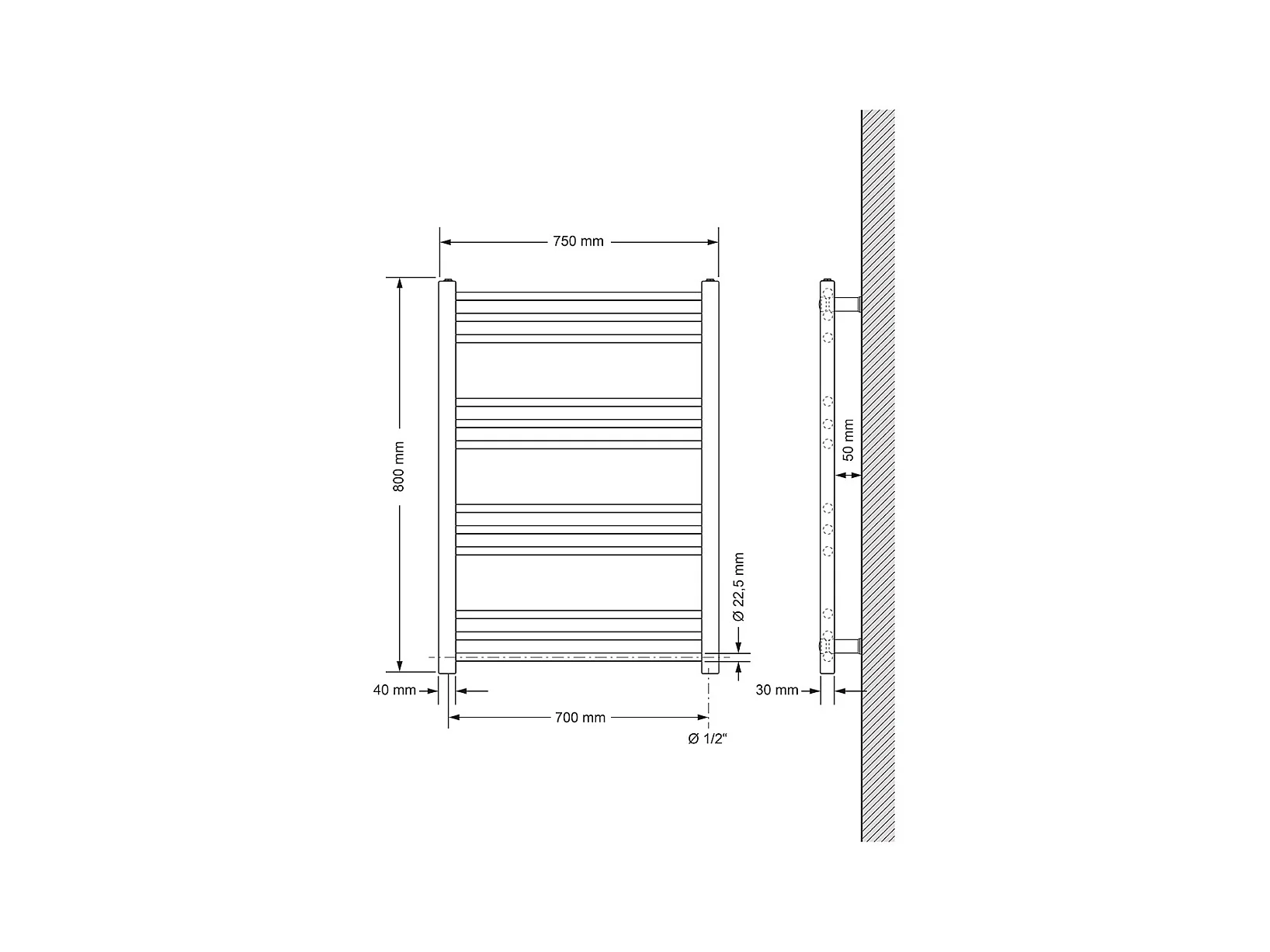 Radiatore Sahara, 500 x 800 mm, cromato, attacco laterale