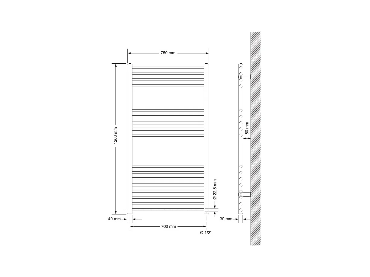 Porta Asciugamani da Bagno, Porta Asciugamani CECIPA MAX Nero, Porta Asciugamani Laterale da 40 cm per Mobile Bagno