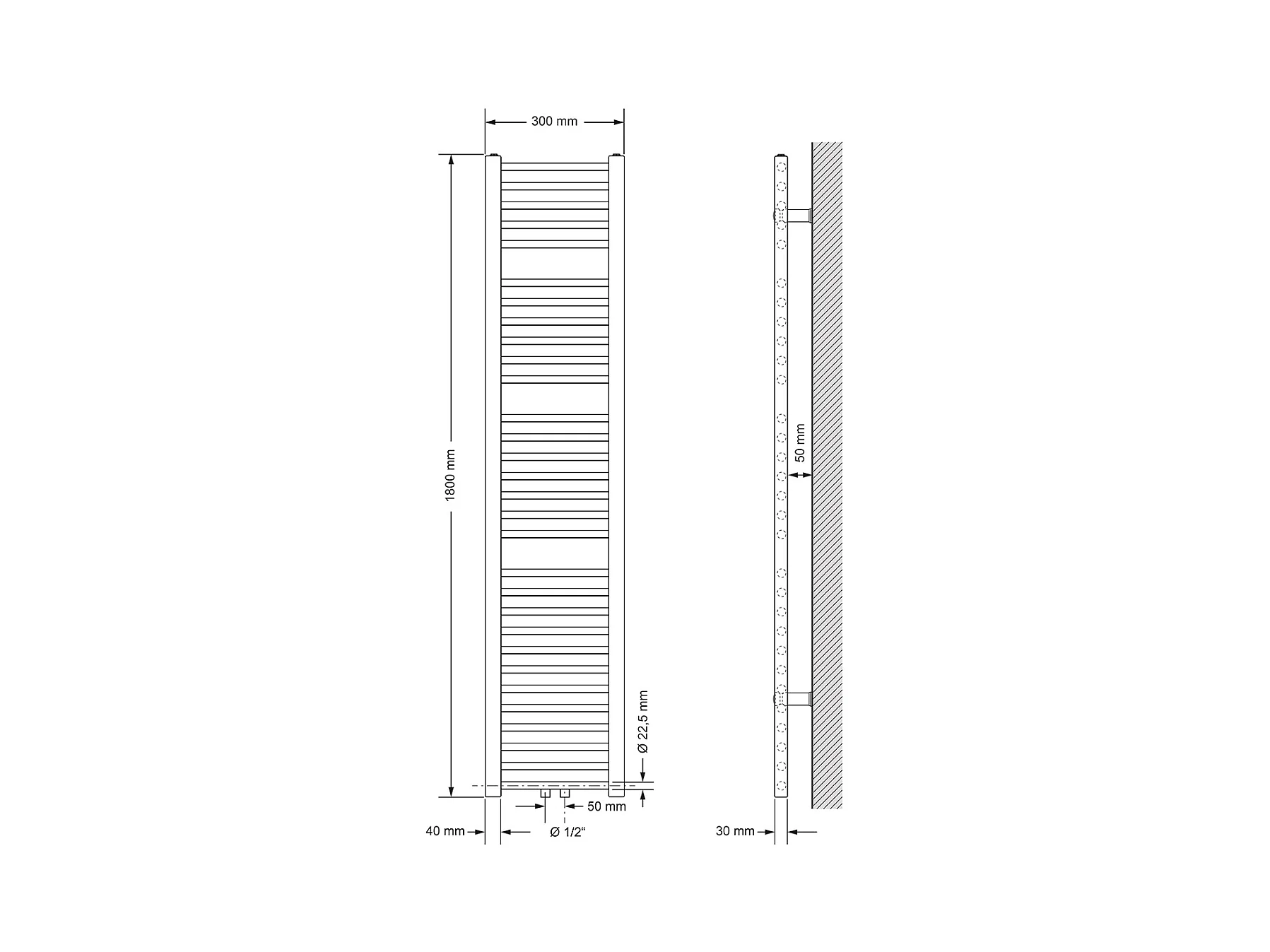 Radiatore da bagno 300x1800 mm Bianco Destro Centrale Attacco Inferiore con Profilo